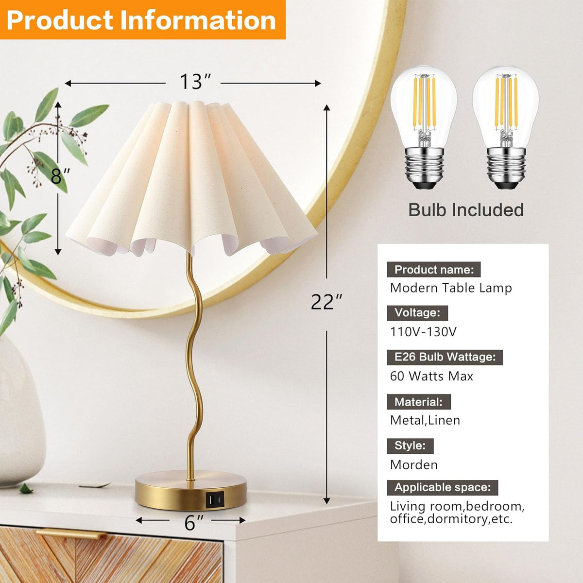 ?Perfect Home Accent?:The minimalist design of the table lamp makes it a versatile addition to any room in your home, ideal for work, reading, relaxation, and dining. It effortlessly complements your home decor.?Bulb Compatibility?- Designed with an E26 socket base, this standing lamp is compatible with standard energy-saving bulbs. You can easily adjust the lighting to create the perfect ambiance for different occasions?Energy Efficient & Long-Lasting?- This lamp is energy-efficient and equipped with a cost-saving bulb that doesn't burn out easily or overheat. It's a smart, eco-friendly choice that helps you save on your electricity bill and reduce energy consumption.Easy Assembly: This living room table lamp is a breeze to set up in just a few minutes, following the user manual. Its minimalist design makes it an ideal gift for loved ones.Should you encounter any problems not related to user damage, please don't hesitate to reach out. We're committed to providing you with a free replacement lamp and ensuring your satisfaction with our premium customer service. Shop with confidence and enjoy a worry-free experience.