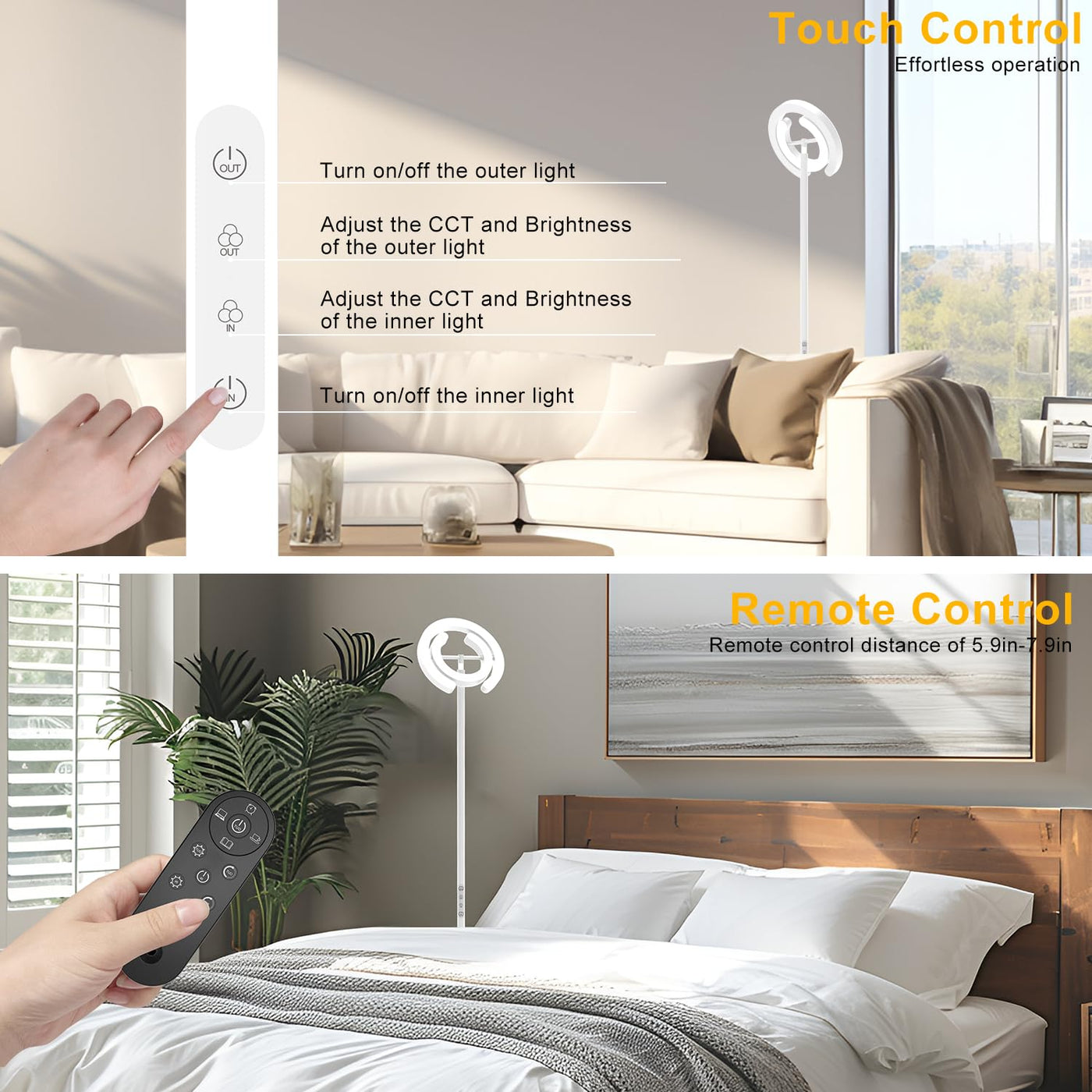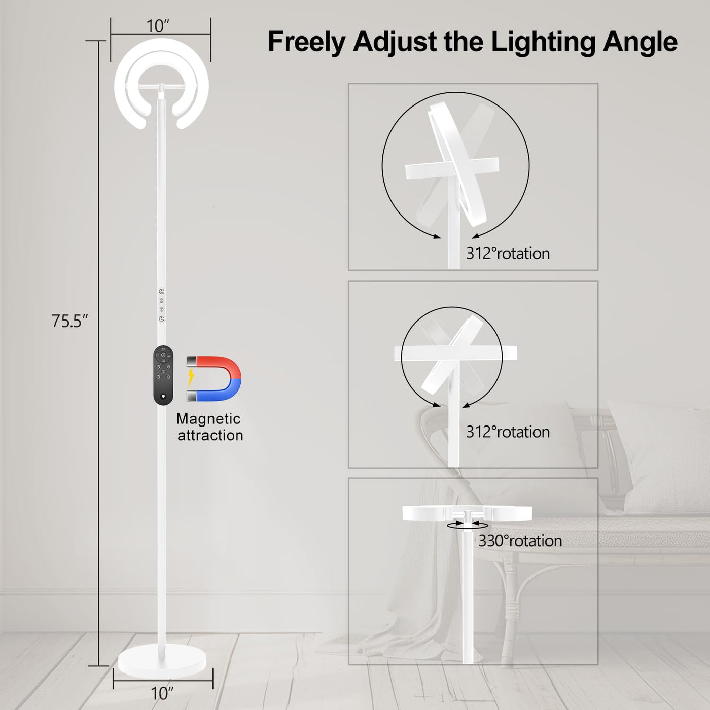 The Epabina Tall Living Room Lamp Is Designed For Modern Living Spaces. It Offers A Bright And Versatile Illumination Solution For Reading Room And Bedrooms. It Features 2 Rotatable C-Shaped Light Source Design, Both Adjustable In Angles, Brightness And Color Temperature, Allowing For Freely Horizontal And Vertical Adjustment And Catering To Various Task And Ambiance Needs. It'S Not Just A Practical Way To Brighten Up Your Home And Office, It'S Also A Statement Piece Of Decoration That Adds Elegance To Your Room. Whether You'Re Showcasing Artwork, Making Nail Art, Reading, Working, Or Simply Enjoying Your Living Space. Ideal For Study Rooms, Offices, And Dining Rooms.