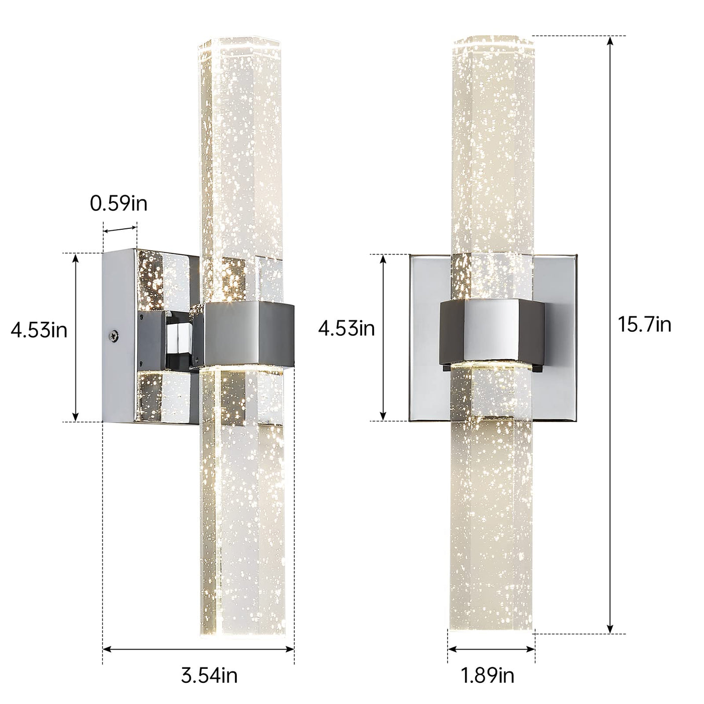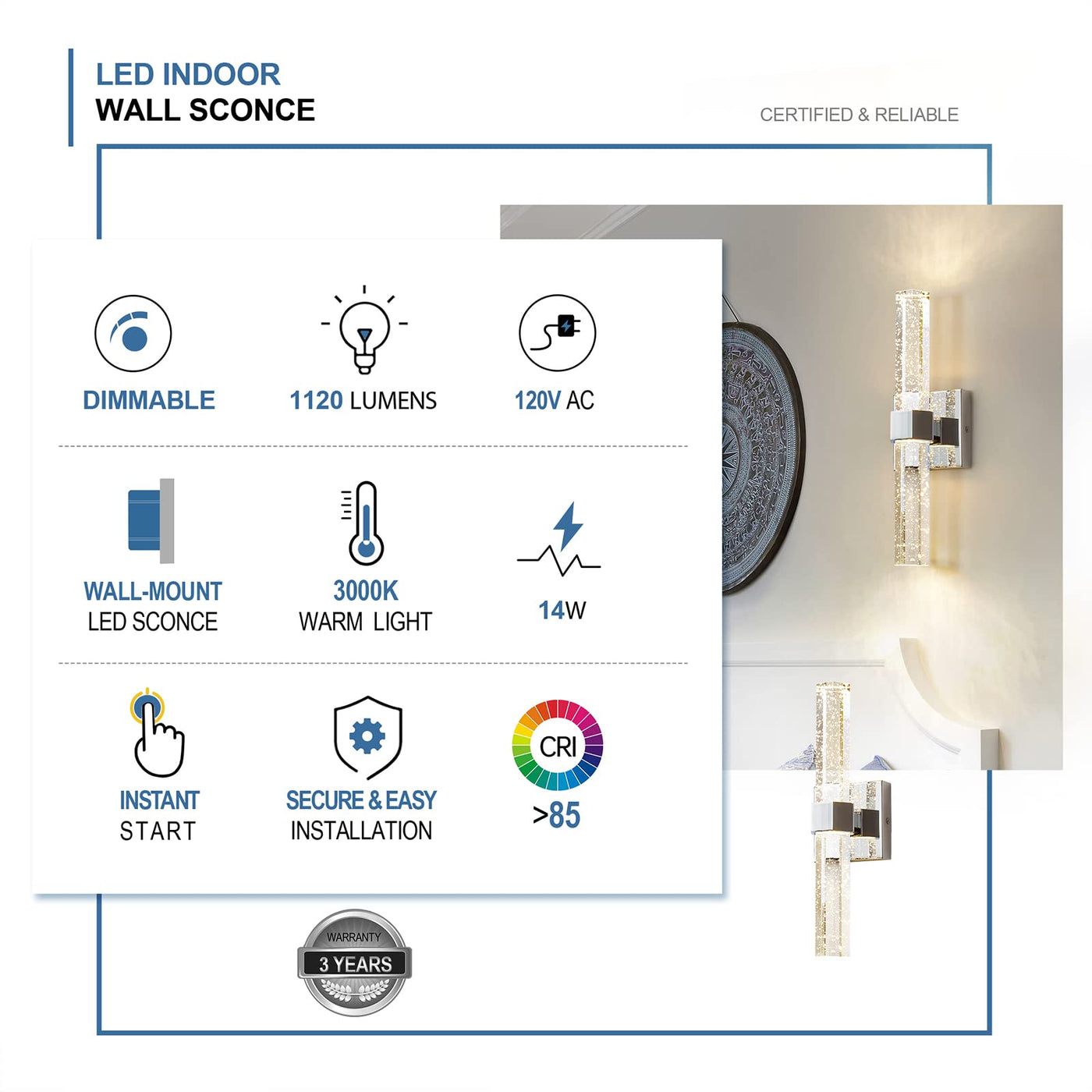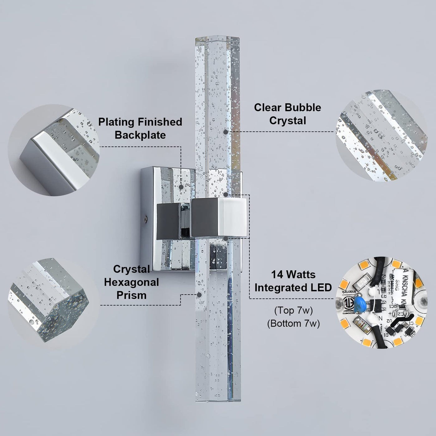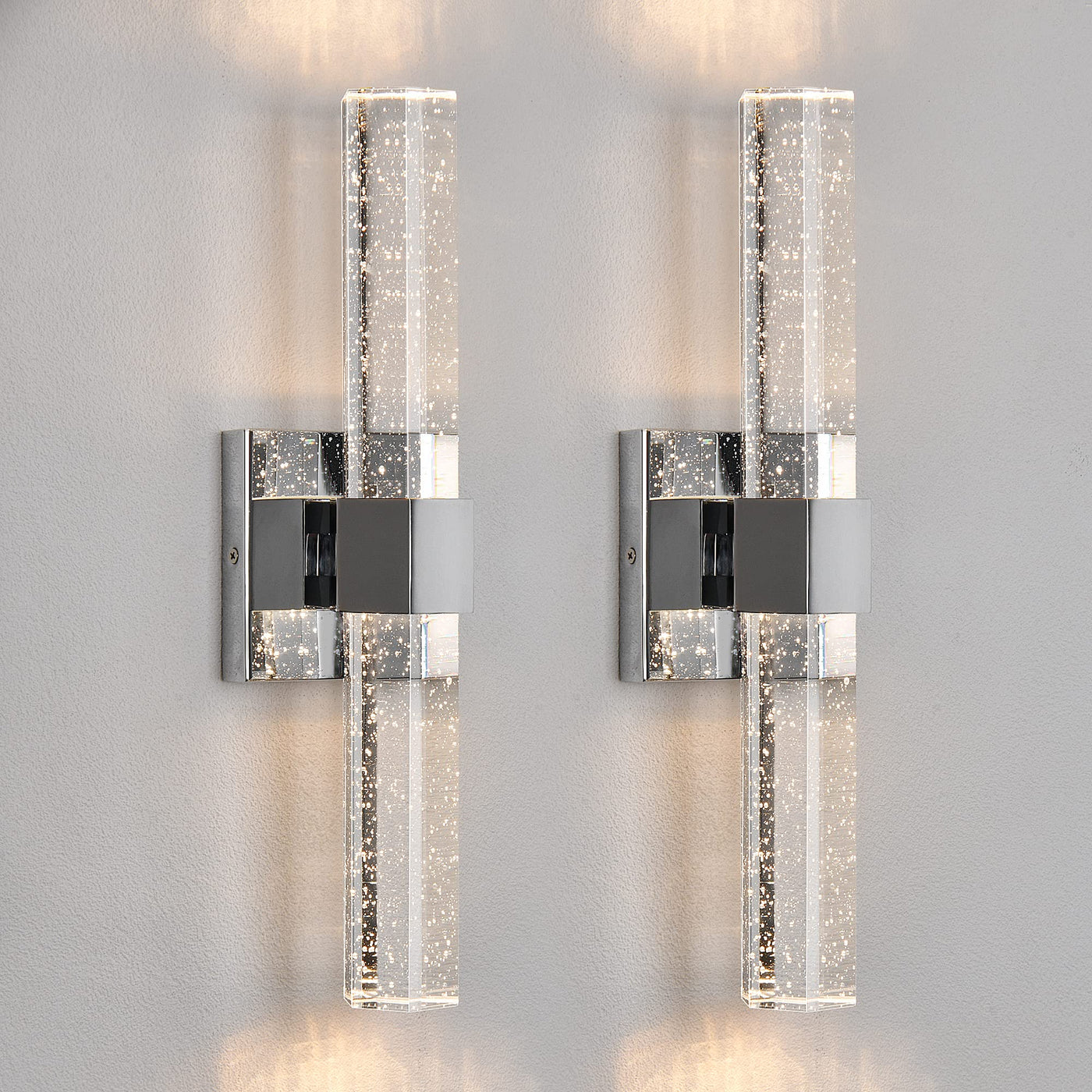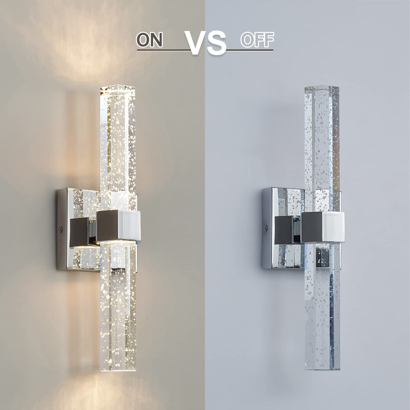 Epinl Wall Sconces Set Of Two - Crystal Sconces Wall Lighting 14W Dimmable Led Bathroom Vanity Light Fixtures Chrome Bubble Wall