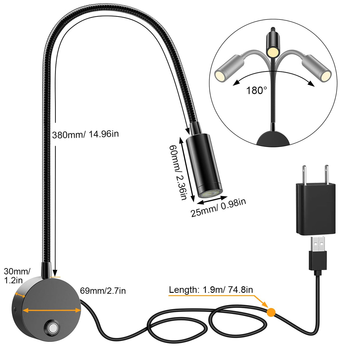 - **5V USB Output**: Stay connected with the built-in 5V 1A USB output. Charge your mobile phone conveniently while you read, increasing the number of available power plugs in your room and enhancing your daily convenience.