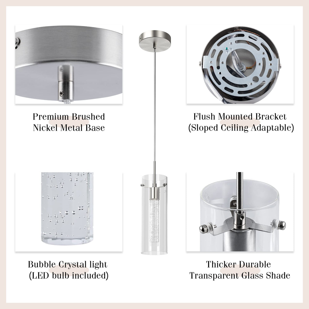 Esfos 1 Pack Pendant Ceiling Light Fixture, Pendant Lights For Kitchen Island Crystal Pendant Light, 1-Light Integrated Kitchen