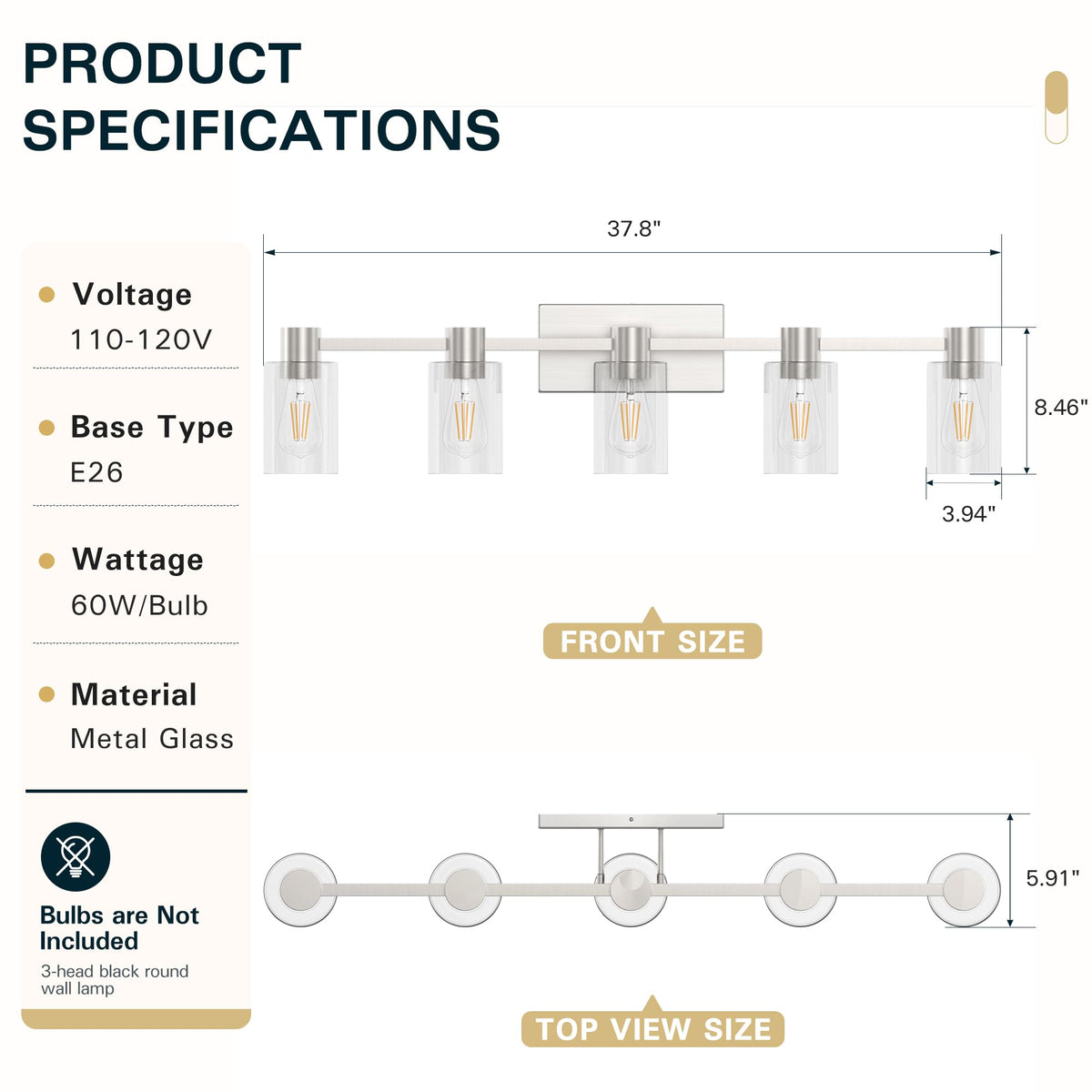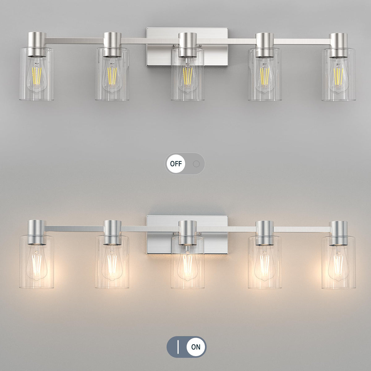 Esfos 5-Light Modern Vanity Light Fixtures Over Mirror, Brushed Nickel Bathroom Light Fixtures, Vanity Lights, Wall Sconce With