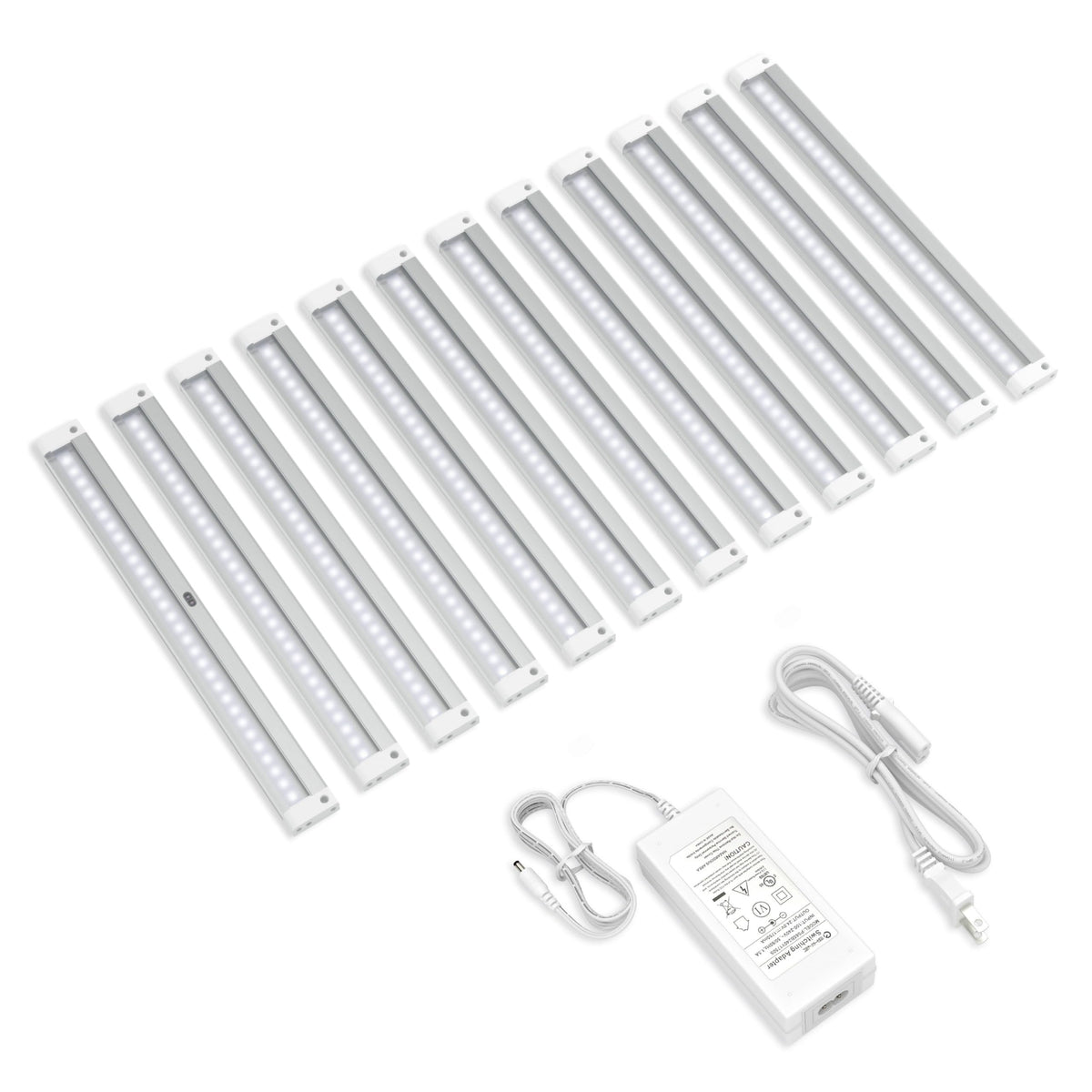 Eshine Hand Wave Activated Under Cabinet Led Lighting Kit, Dimmable, 4-Pack 12 In - Touchless Dimming Control, White Under Count