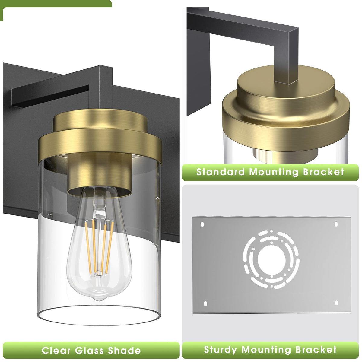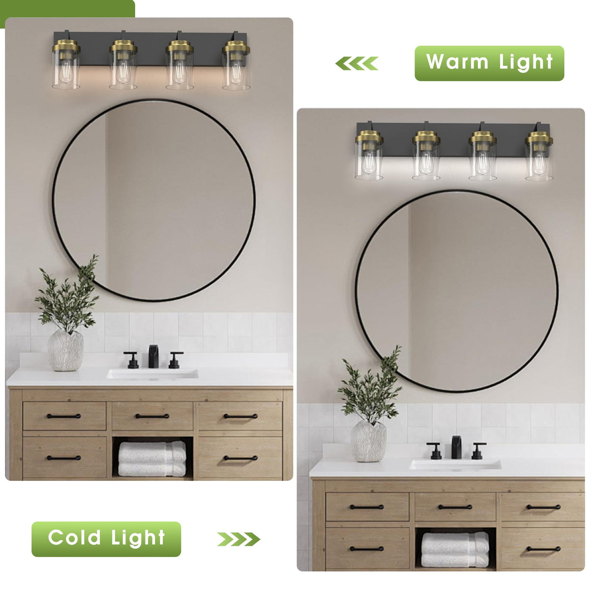 Espird Bathroom Lighting Fixtures, 4-Light Bathroom Vanity Lights Over Mirror, Black And Gold Vanity Light With Glass Shade, Mod
