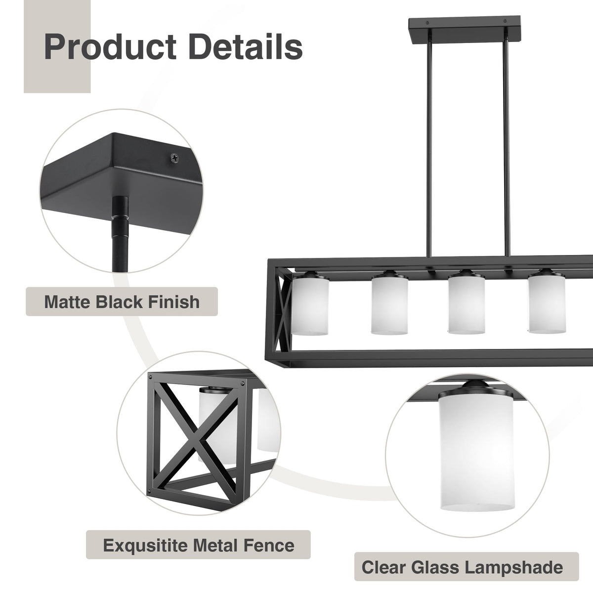 Espird Black White Dining Room Light Fixture - 5 Light Rectangle Light Fixture With Milk Glass Shade & Adjustable Height & Thick