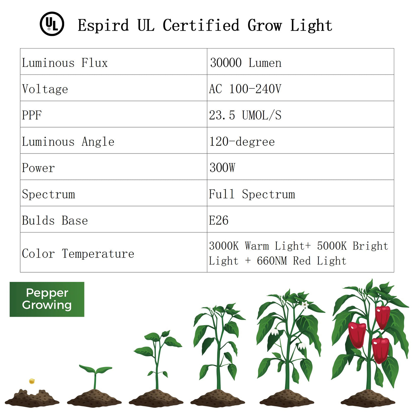 - **UL Certified Safety**: Espird outdoor grow lights undergo rigorous UL certification, ensuring a safe and reliable product for your gardening needs.