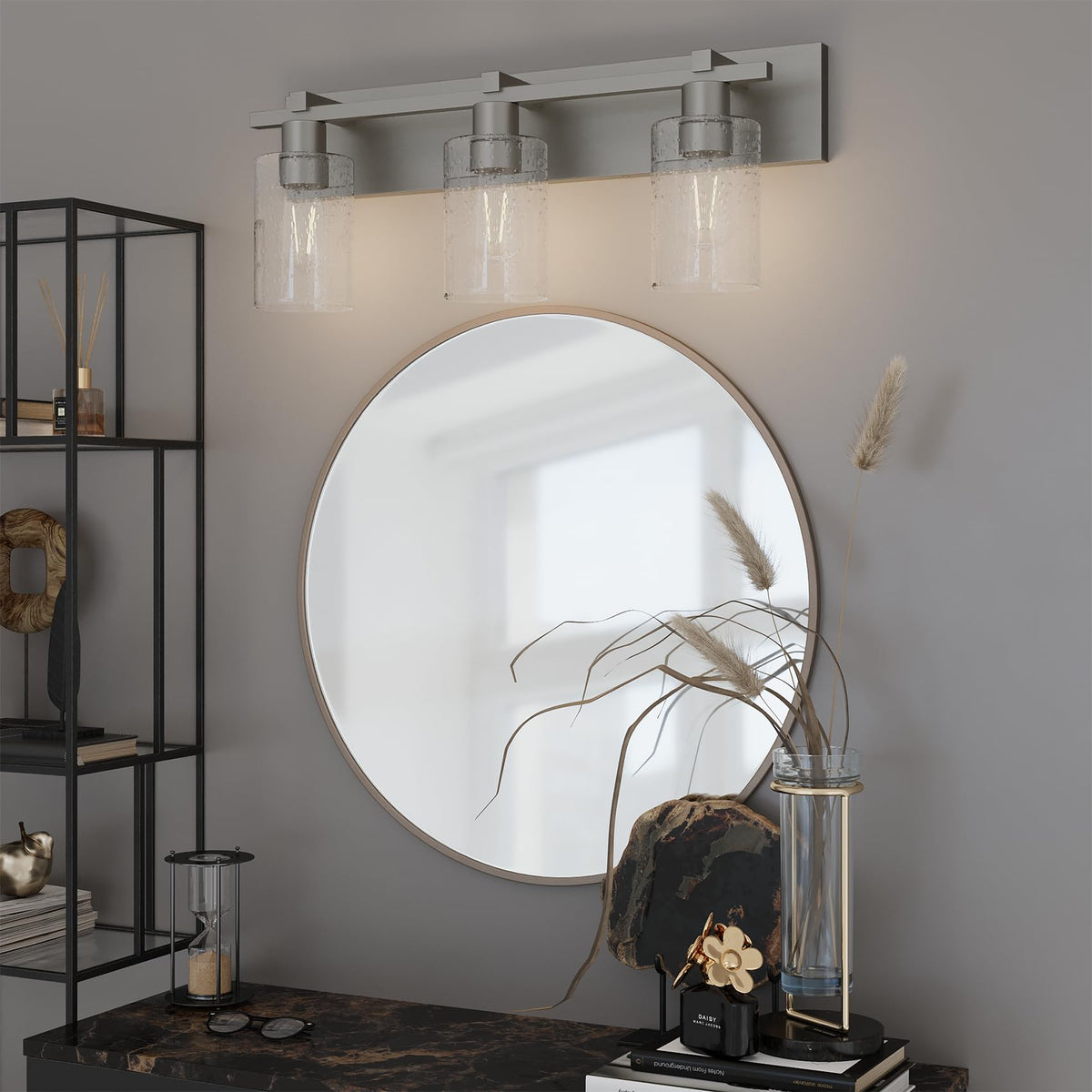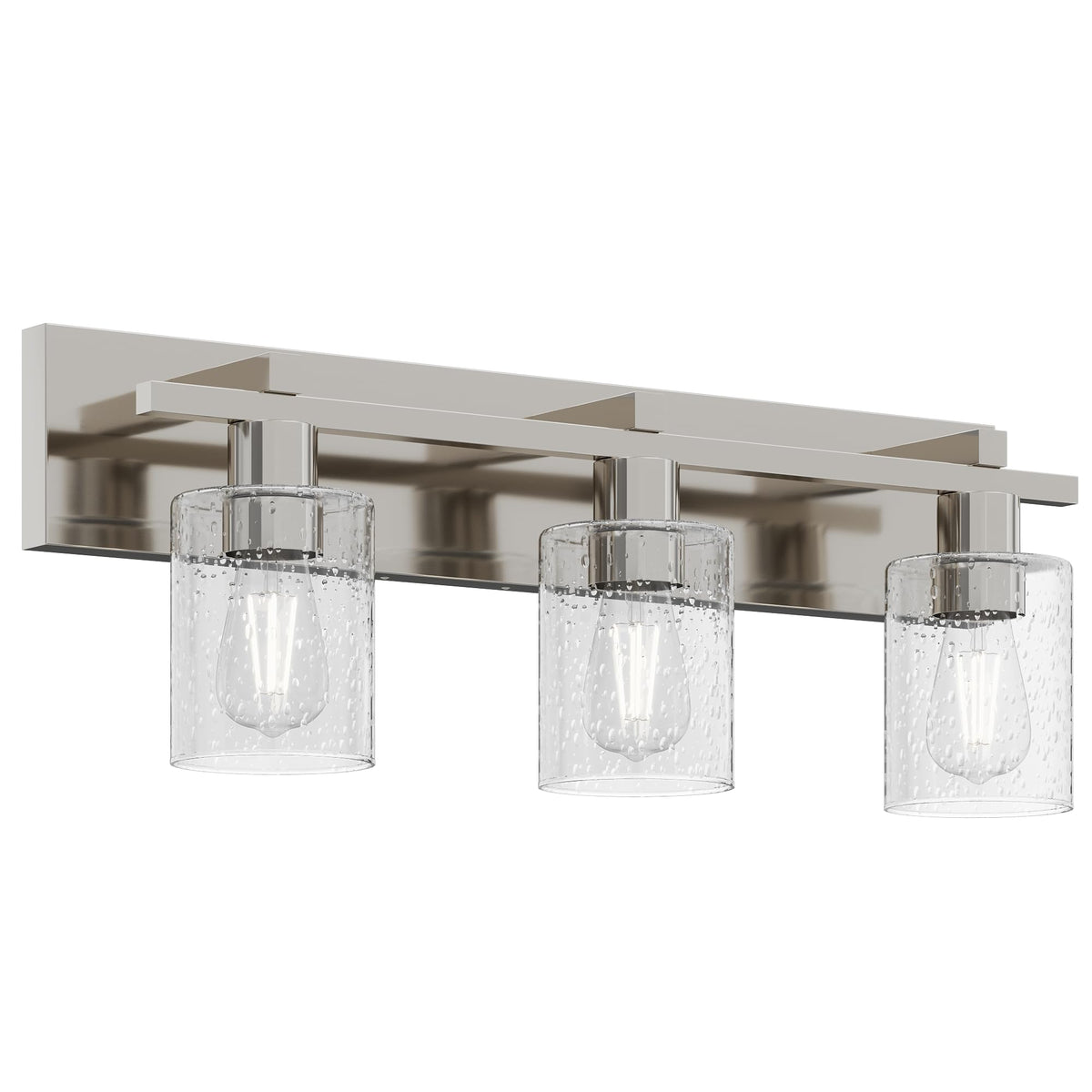 Espird Modern Vanity Lights, 3 Light Brushed Nickel Bathroom Light Fixture With Thickened Seeded Glass Shade, 24 Inch Vanity Lig