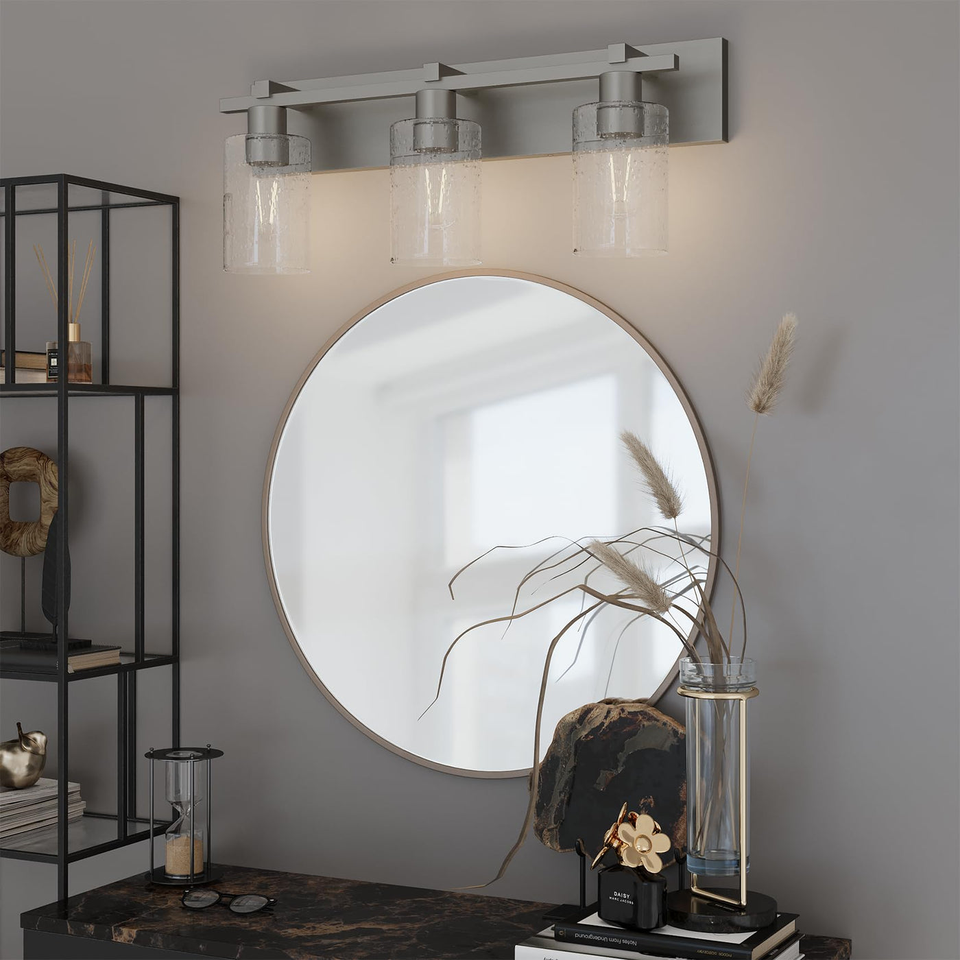 Espird Bathroom Vanity Light, 3 Light Brushed Nickel Bathroom Light Fixture with Thickened Seeded Glass Shade, 24 inch Modern Vanity Lights, Bathroom Lights over mirror for Bathroom