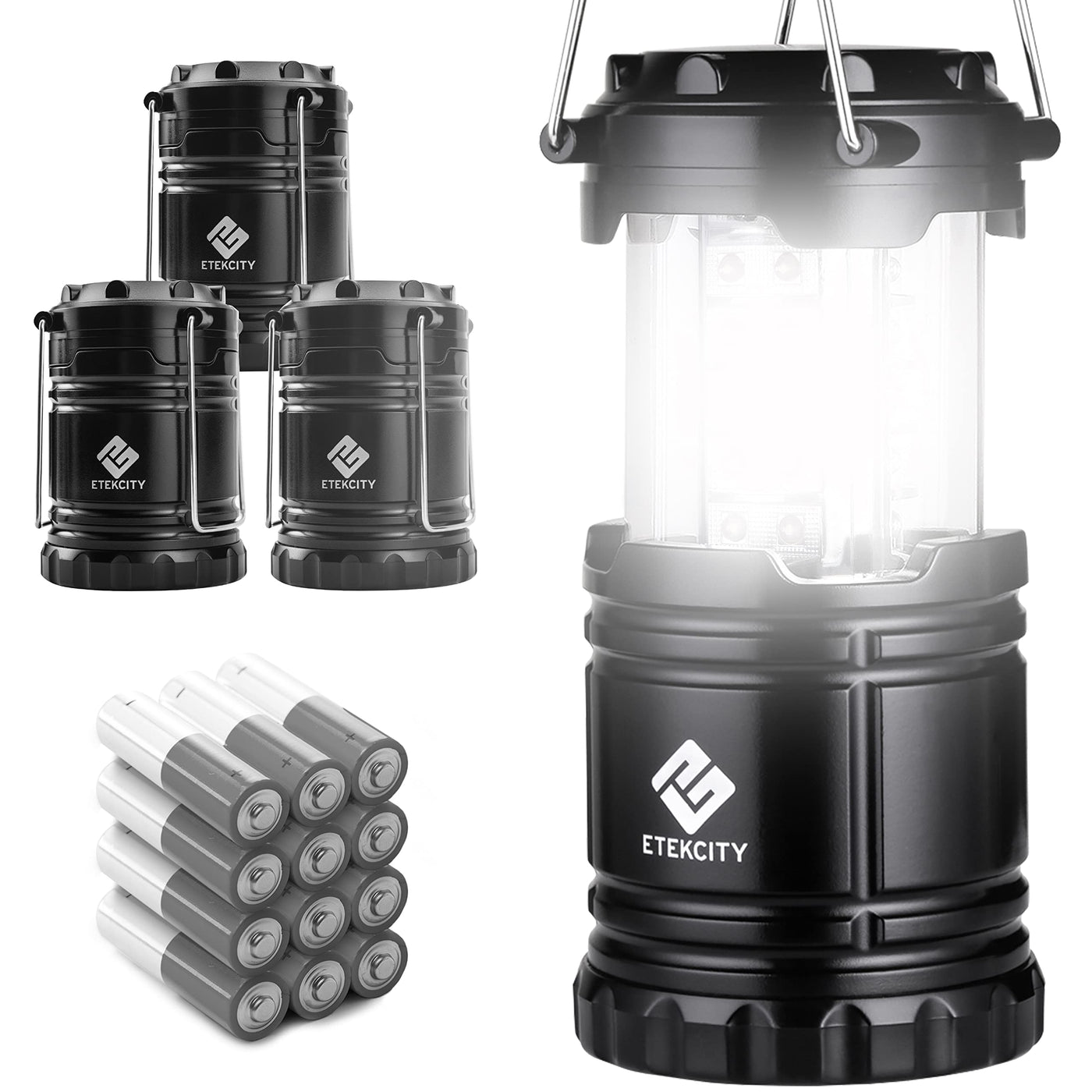 Etekcity 4 Pack Camping Lanterns & Flashlights - Led Emergency Lights For Power Outages, Black