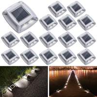 Etetale Solar Driveway Lights 16 Pack, Solar Powered Ip68 Waterproof Solar Dock Lights, 4 Led Driveway Markers Deck Lights For Dock, Pathway, Walkway, Sidewalk, Garden, Yard, Stair, Marine Use (White)
