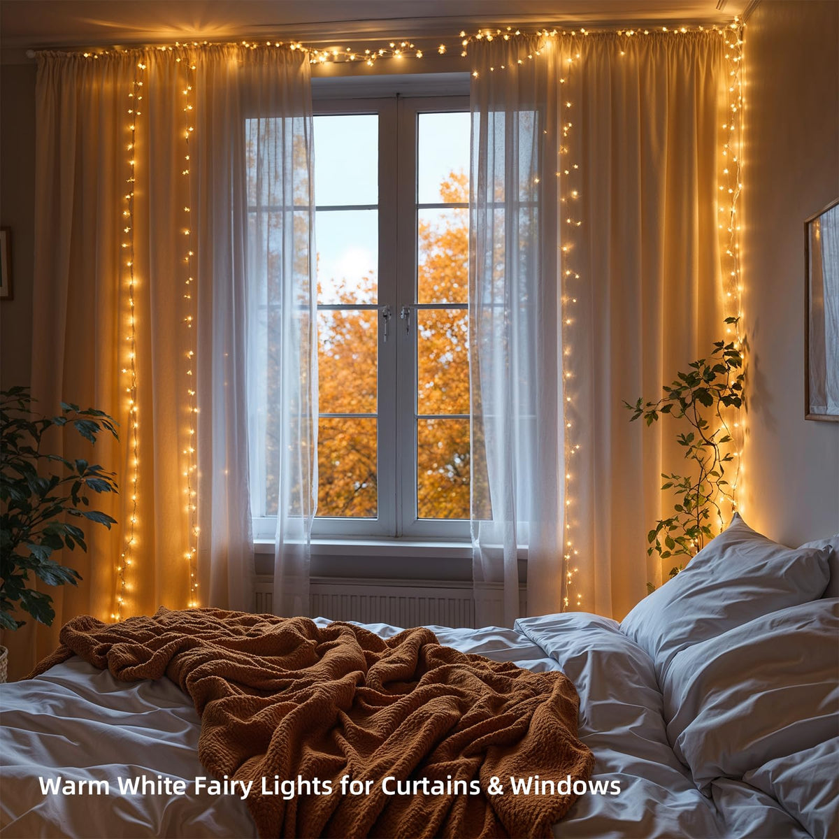 Etinga 100 Led String Lights 33Ft Warm White Plug In Fairy Lights With 8 Lighting Modes Indoor Outdoor Christmas Lights For Bedroom Tree Yard Patio Wedding Holiday Decor (Warm White 100 Led 33Ft)