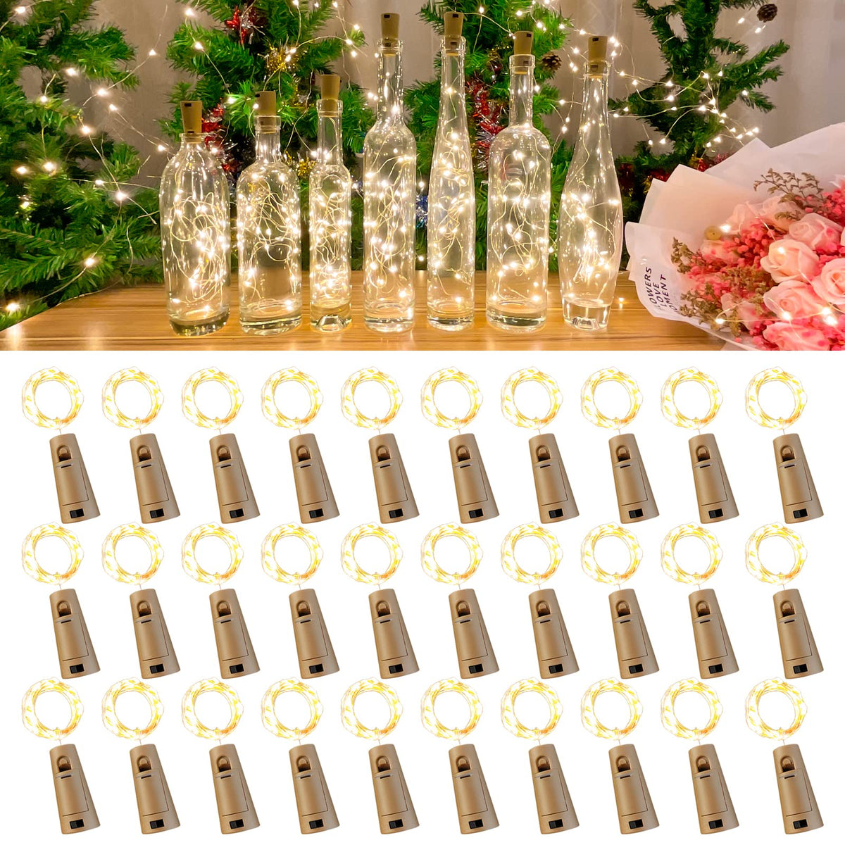 Etinga 30 Pack Wine Bottle Lights With Cork, 20 Leds, 6.6 Ft, Fairy Mini String Lights For Diy Jar Halloween, Christmas, Party Decoration, Wedding Listing (30 Pack, Warm White)