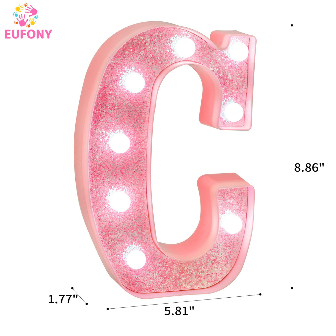 EUFONY Pink Glitter LED Marquee Light Up Letter C with Cool White Lights, Battery-Powered Alphabet Letter Sign for Girls Gift, B