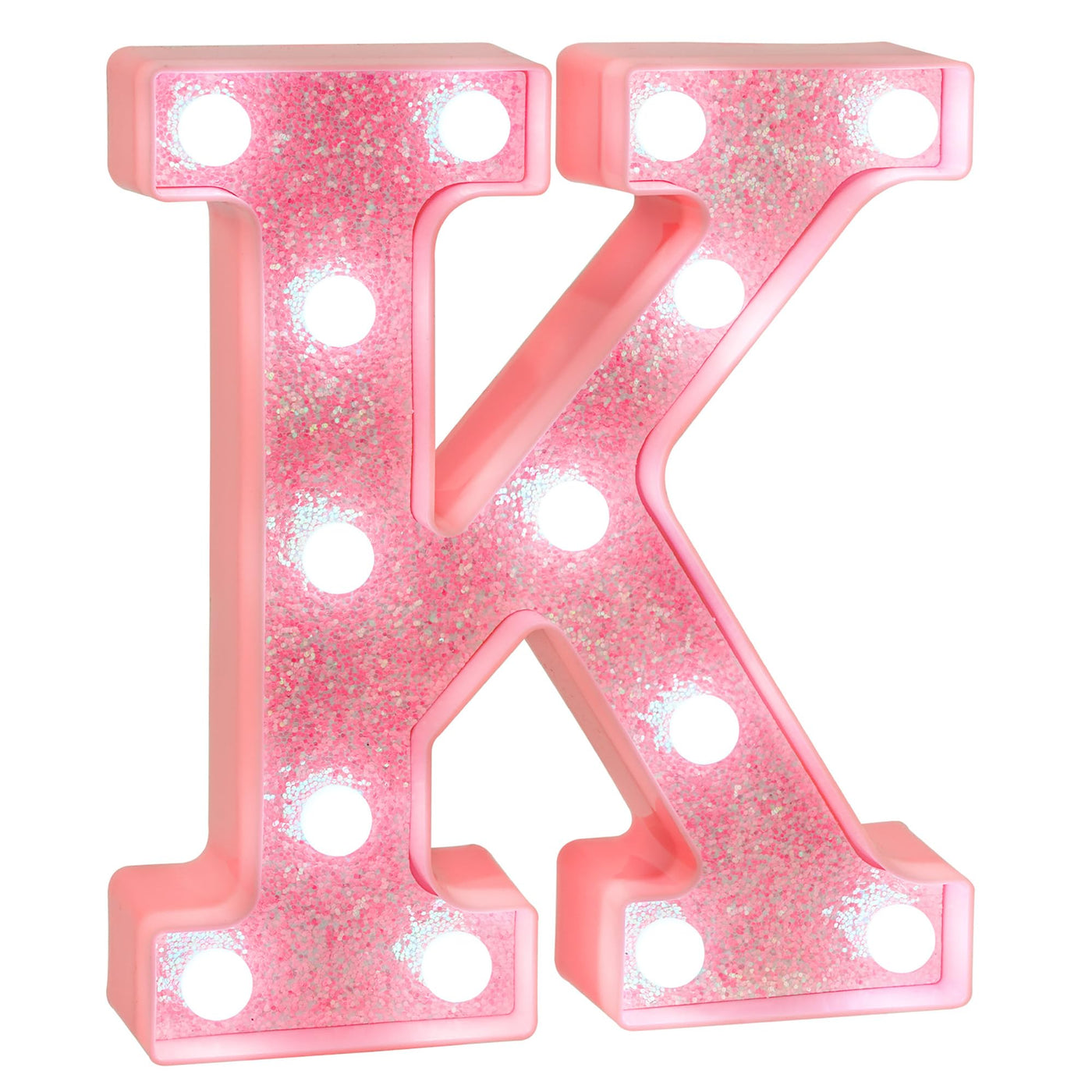 EUFONY Pink Glitter LED Marquee Light Up Letter K with Cool White Lights, Battery-Powered Alphabet Letter Sign for Girls Gift, B