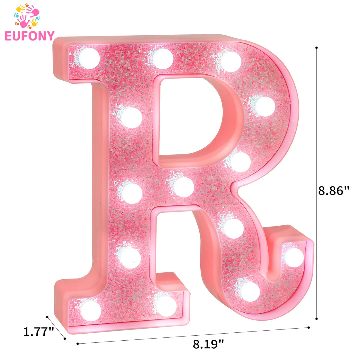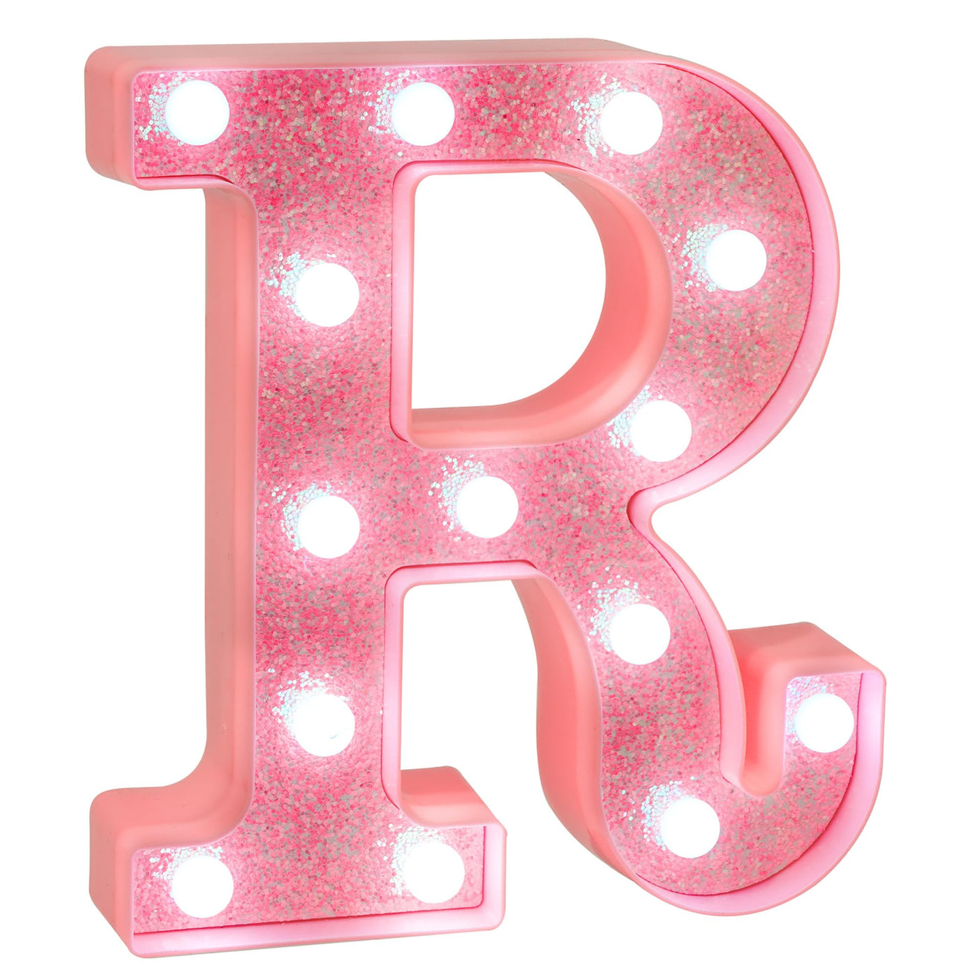 EUFONY Pink Glitter LED Marquee Light Up Letter R with Cool White Lights, Battery-Powered Alphabet Letter Sign for Girls Gift, B