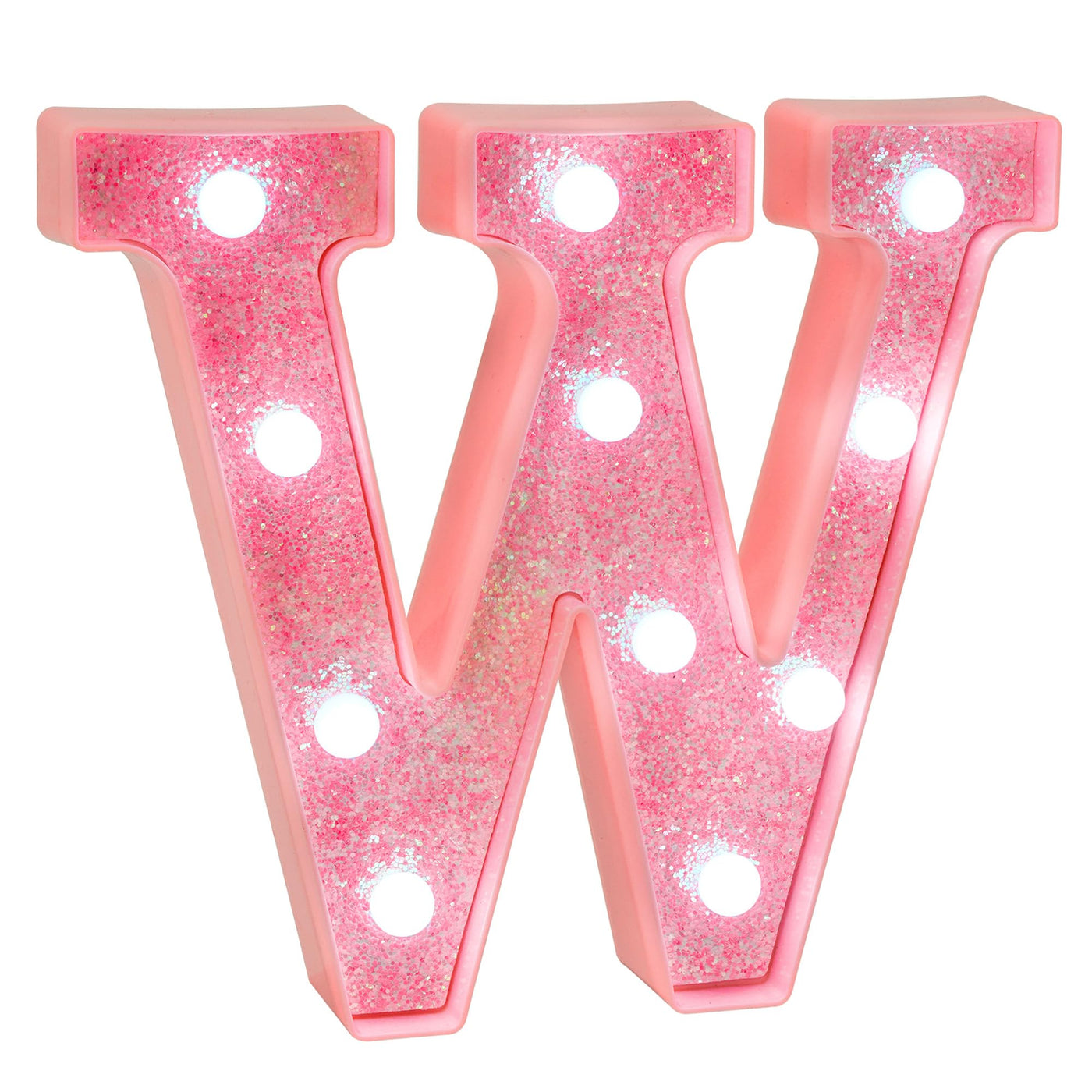 EUFONY Pink Glitter LED Marquee Light Up Letter W with Cool White Lights, Battery-Powered Alphabet Letter Sign for Girls Gift, B