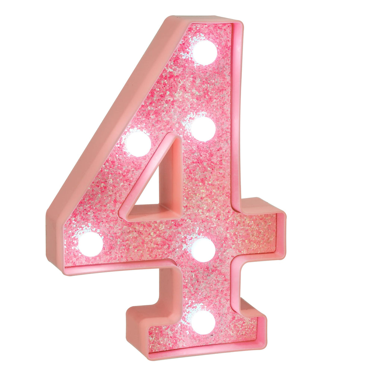 EUFONY Pink Glitter LED Marquee Light Up Number 4 with Cool White Lights, Battery-Powered Numbers sign for Girls Birthday Party