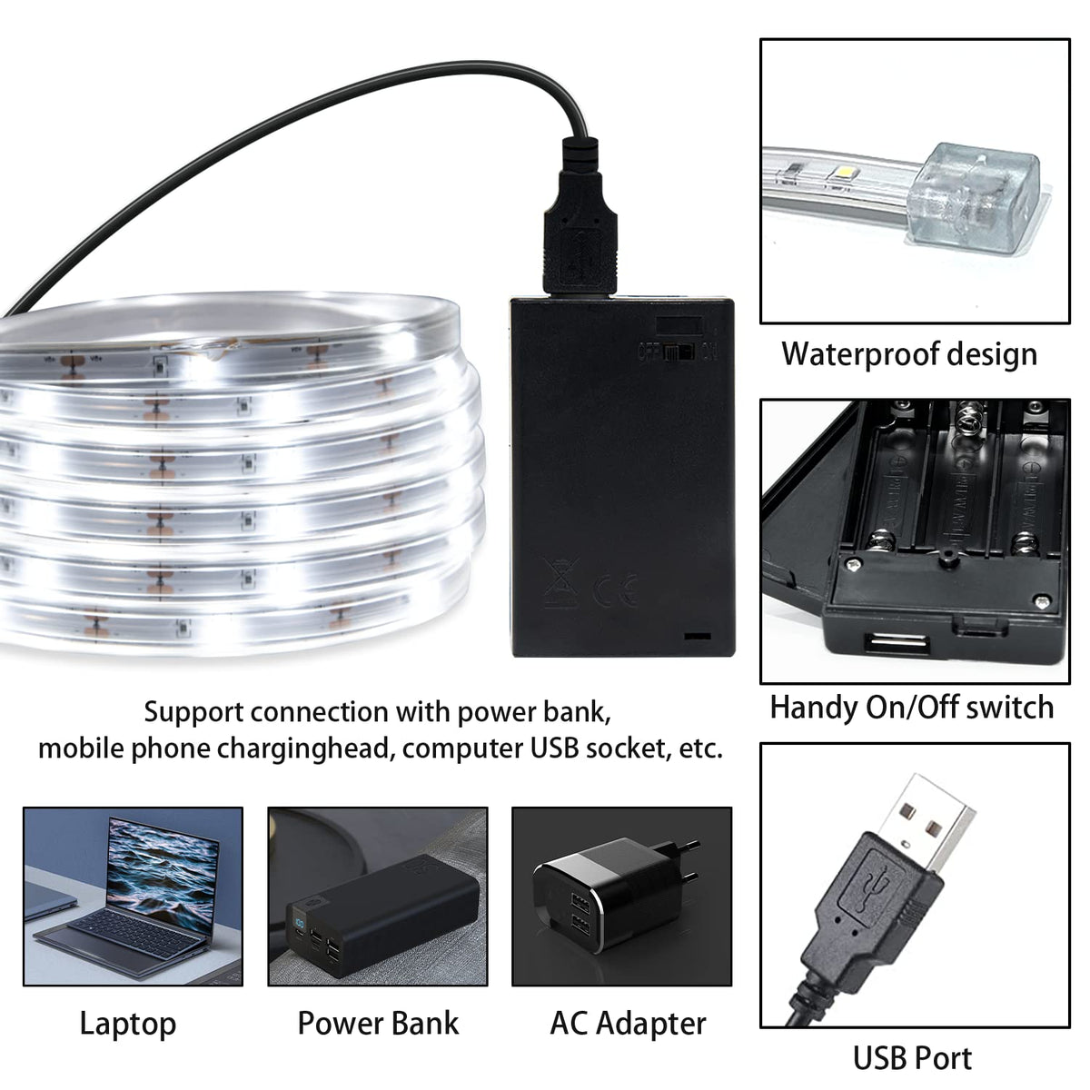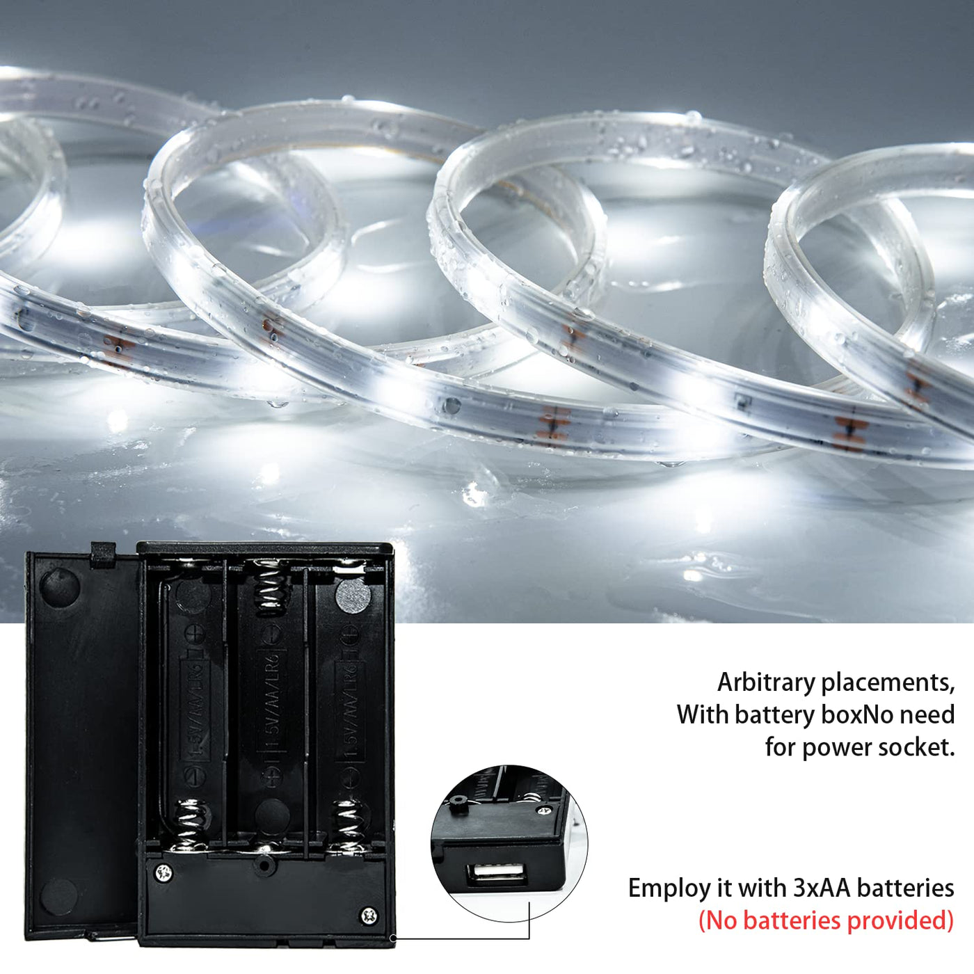 Eugobrten Led Rope Lights Outdoor Waterproof Battery Led Strip Lights, 16.4Ft Flexible White Led Strip Lights Battery Powered Brighter Battery Powered White Lights For Camp Party Bedroom Tv