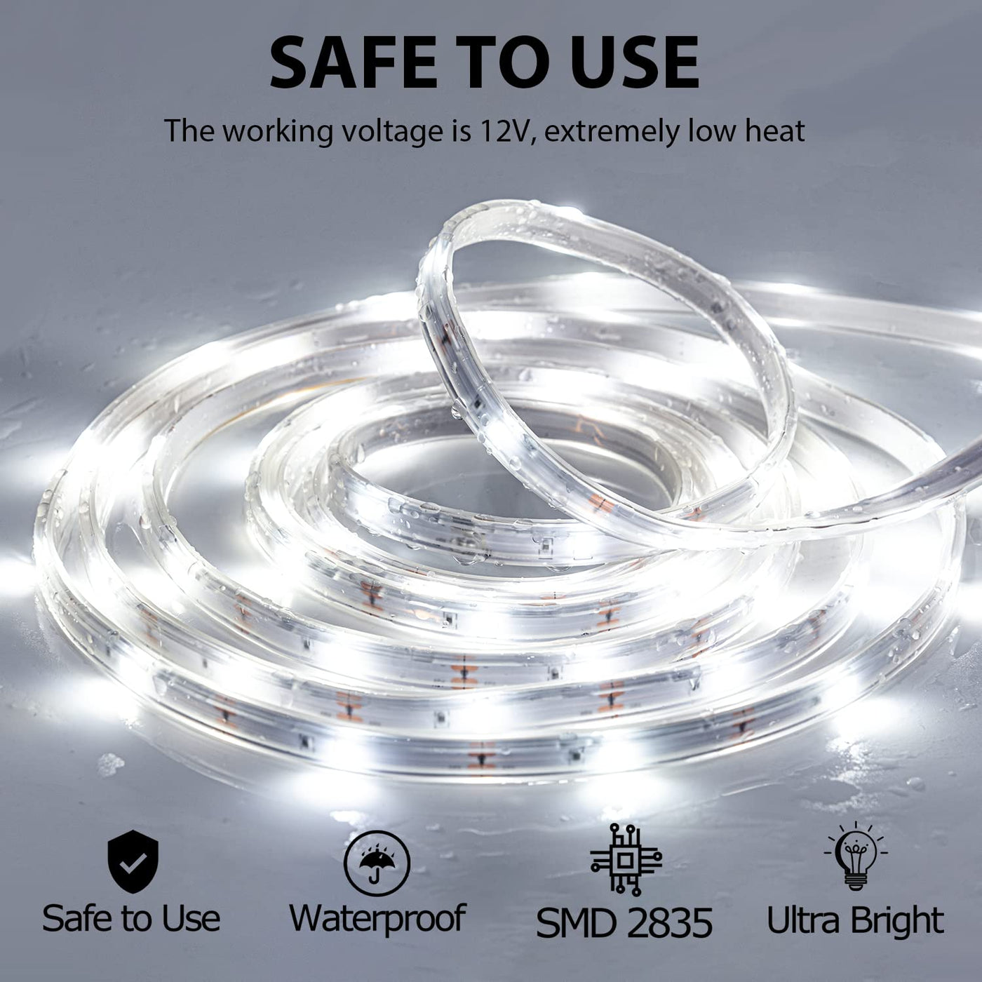 Q: Are these LED strip lights safe for outdoor use?A: Yes, the EUGOBRTEN LED Rope Lights are designed for outdoor use with an IP65 waterproof rating, but please note that the USB connection is not waterproof and requires additional protection.