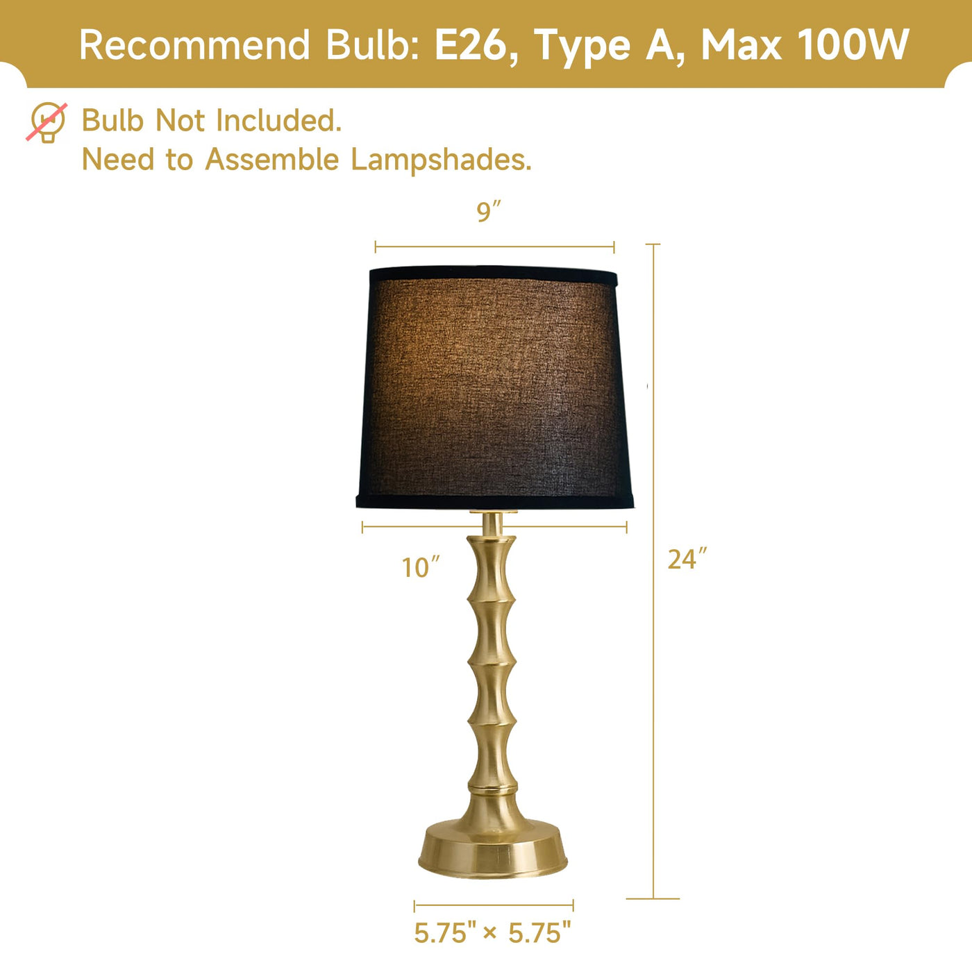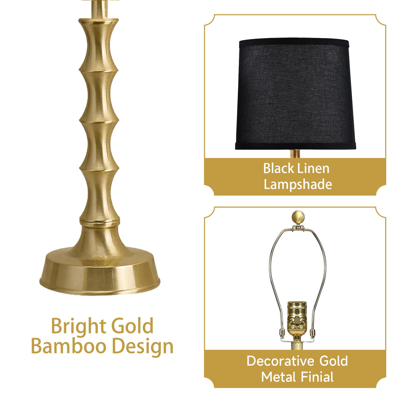 As A Black Gold Table Lamps Set Of 2, The Euo 24'' Small Gold Lamps Are Made Of Harmless And High-Quality Materials. The Plated Metal Base Is Used As The Main Body Of The Gold Lamps Set Of 2, With The Black Linen Lamp Shade. A Black Gold Table Lamps Set Of 2 Is Suitable For Living Room, Bedroom, Office, Study Room, And Other Spaces. The Linen Fabric Makes The Light Softer, Preventing Your Eyes From Being Irritated By Looking Directly At The Light, Playing An Eye-Caring Role. The Gold Bamboo Lamp Base Makes The Small Skinny Table Lamp Very Decorative And High-End. During The Day, The Euo Gold Table Lamps Set Of 2 Is A Special Decor. When Night Falls, The Soft Light Creates A Comfortable And Warm Atmosphere For Your Home, Accompanying You And Your Family Through Each Night. (Series Options: Two Height Choices:24In Vs 30.5In; Two Colorchoices: Black Vs White)