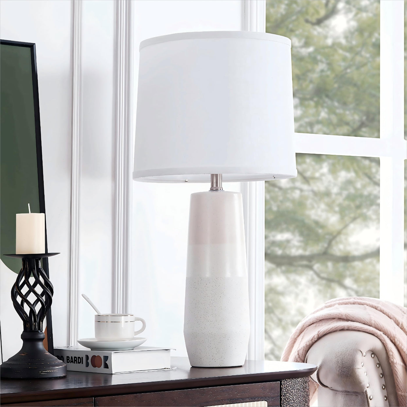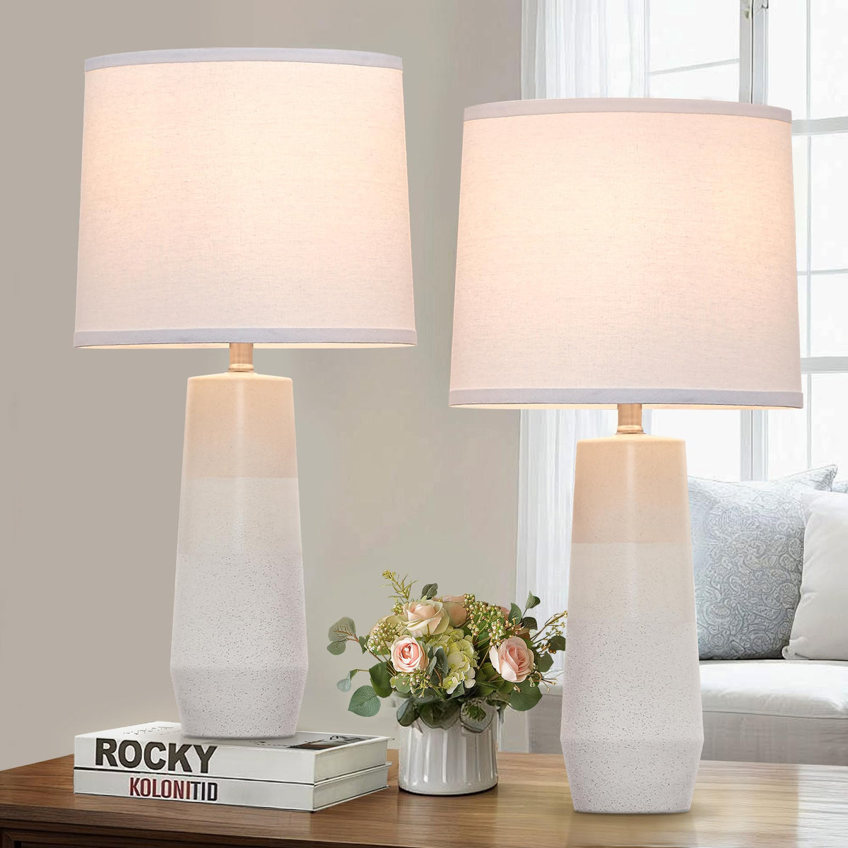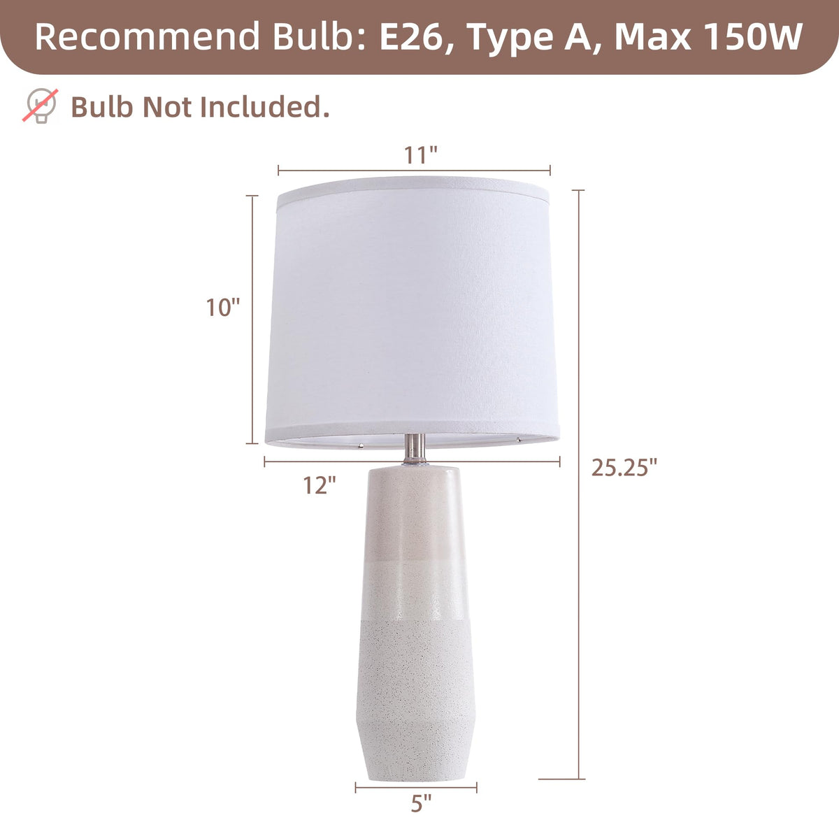 Euo 25.25'' White Ceramic Table Lamps Set Of 2 Shows A Textured And Minimalist Look With A White Gradient Color. The 3-Layers Dipped Glazed Craftsmanship Creates Half-Glazed And Half-Matte Effect On The Surface Of Ceramic Lamp, Which Makes The White Table Lamp More Special And Unique. The White Lamps Set Of 2 Has A Tall And Narrow Lamp Base, Assembled With A White Linen Lampshade. The All-White Design Presents A Modern And Elegant Style In Your Home, Which Is Suitable For Using As A Bedside Lamp For Nightstand, Or An End Table Lamp For Living Room. The White Barrel Linen Lampshade Makes The Light Softer, Playing An Eye-Caring Role. When Night Falls, The White Lamps Set Of 2 Create A Comfortable And Warm Atmosphere For Your Home, Accompanying You And Your Family Through Each Night.