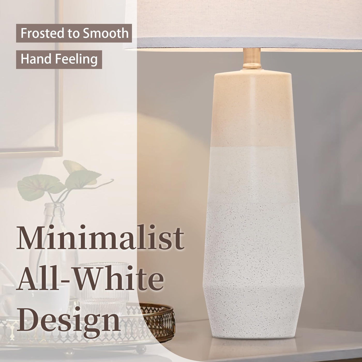 Euo 25.25'' White Ceramic Table Lamps For Living Room, Ceramic White Lamps Set Of 2 For Nightstand, Minimalist White Table Lamps