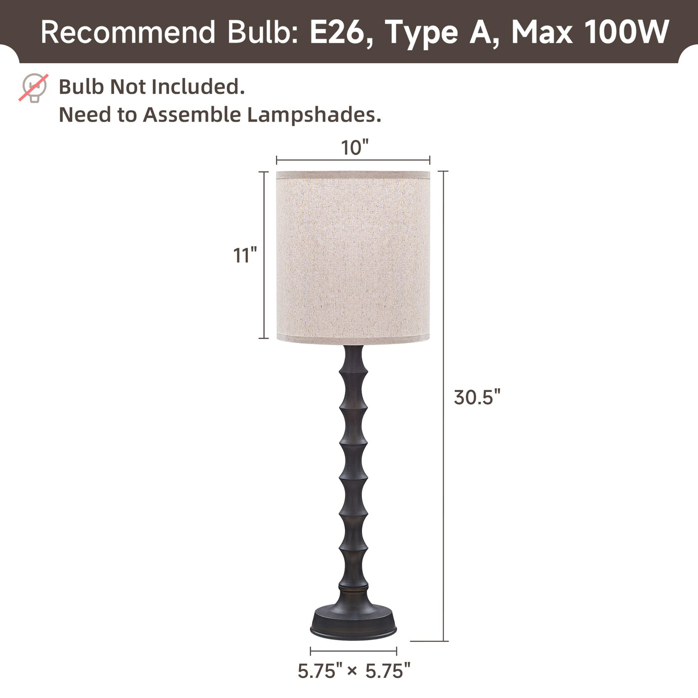 Euo 30.5'' Rustic Buffet Table Lamps For Living Room Set Of 2, Farmhouse Table Lamps For Buffet Set Of 2, Oil Rubbed Bronze Cand