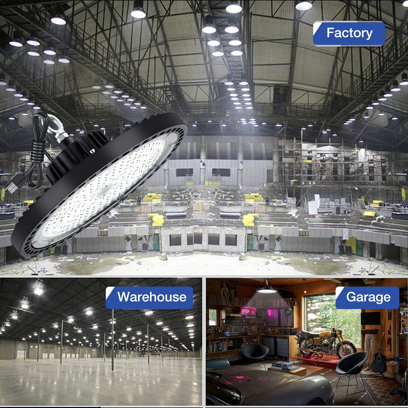 Q: Is the EVBFORU High Bay Light suitable for wet locations?A: Yes, the EVBFORU High Bay Light is rated IP66, making it weatherproof and suitable for wet locations. This makes it ideal for various environments, including garages, warehouses, workshops, and even outdoor settings.