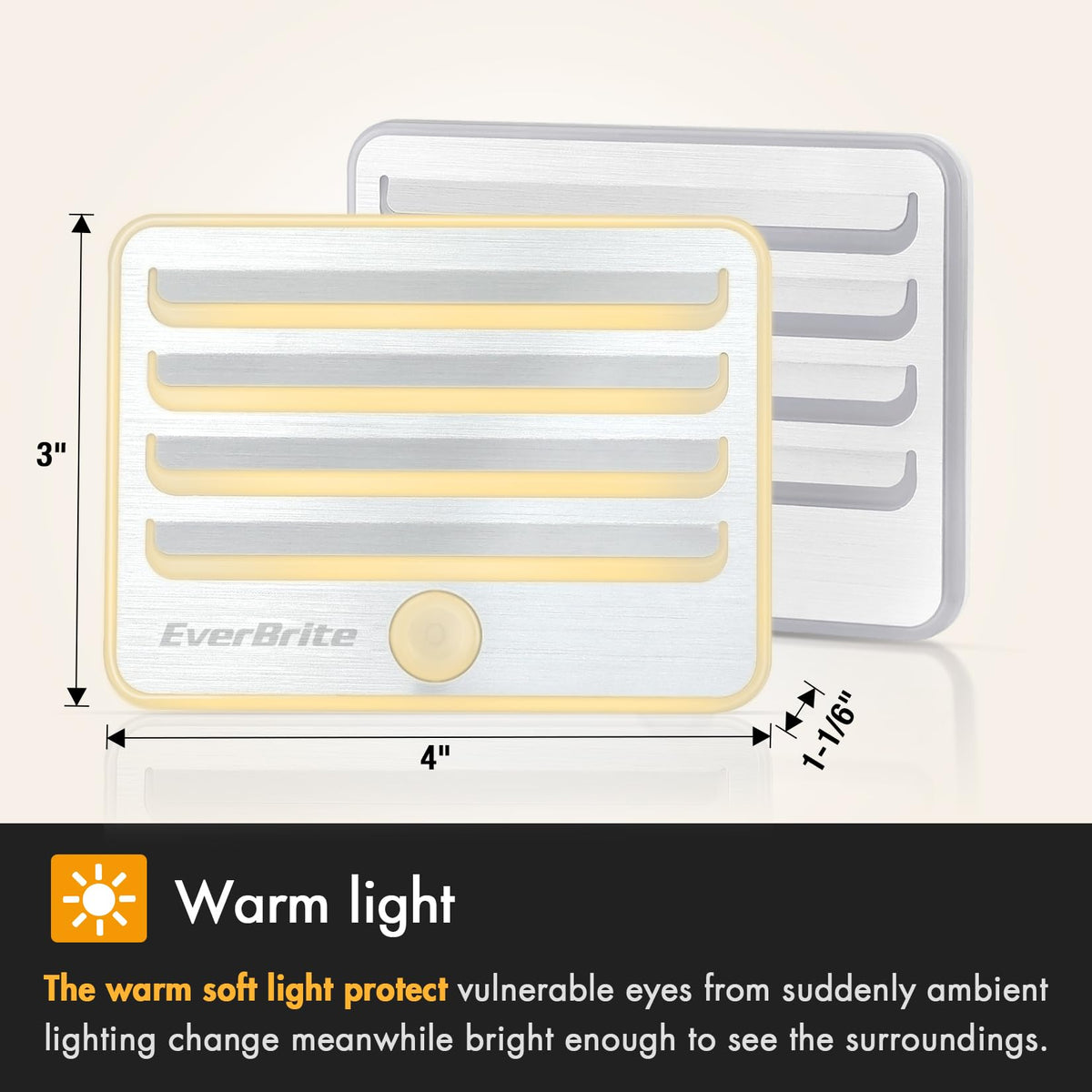 Q: What kind of light do the EverBrite night lights emit?A: The EverBrite Motion Sensor Night Lights emit a soft warm light that is gentle on the eyes, making them ideal for nighttime use. This type of lighting helps prevent abrupt changes in brightness, which can disturb sleep.