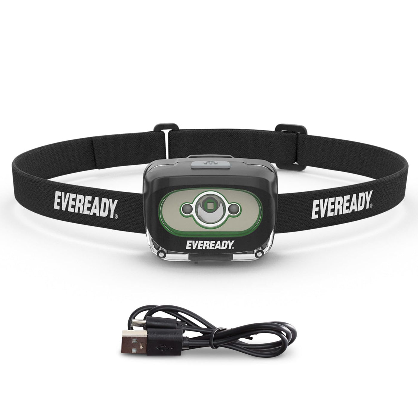 Eveready 300 Lumen Rechargeable Led Headlight, Ipx4 Waterproof, Shatterproof Lens, Black