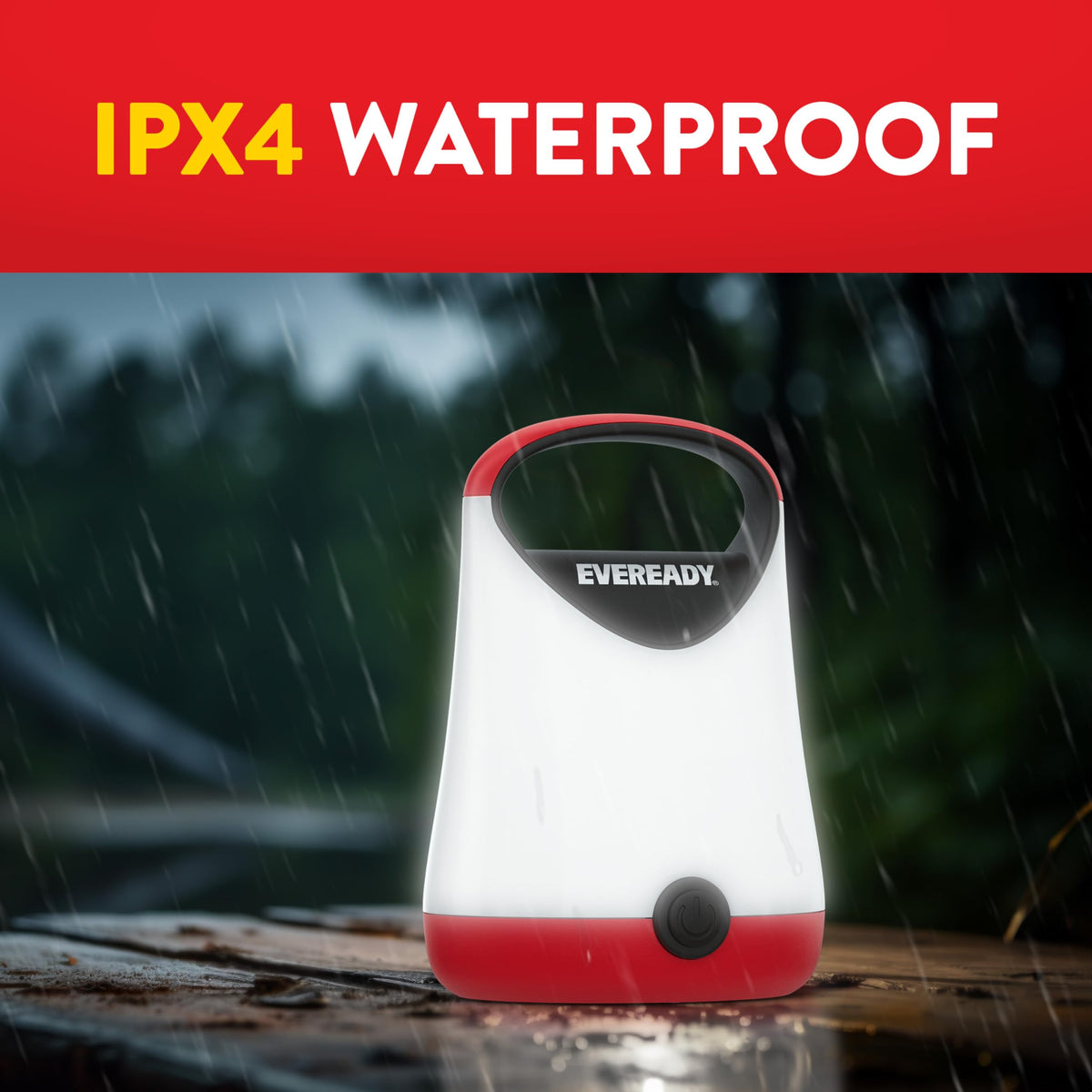 Q: Is the Eveready LED Camping Lantern suitable for outdoor use?A: Yes, the Eveready LED Camping Lantern is designed for outdoor use with its IPX4 water-resistant rating and impact resistance up to 1 meter, making it a durable choice for camping and other adventures.