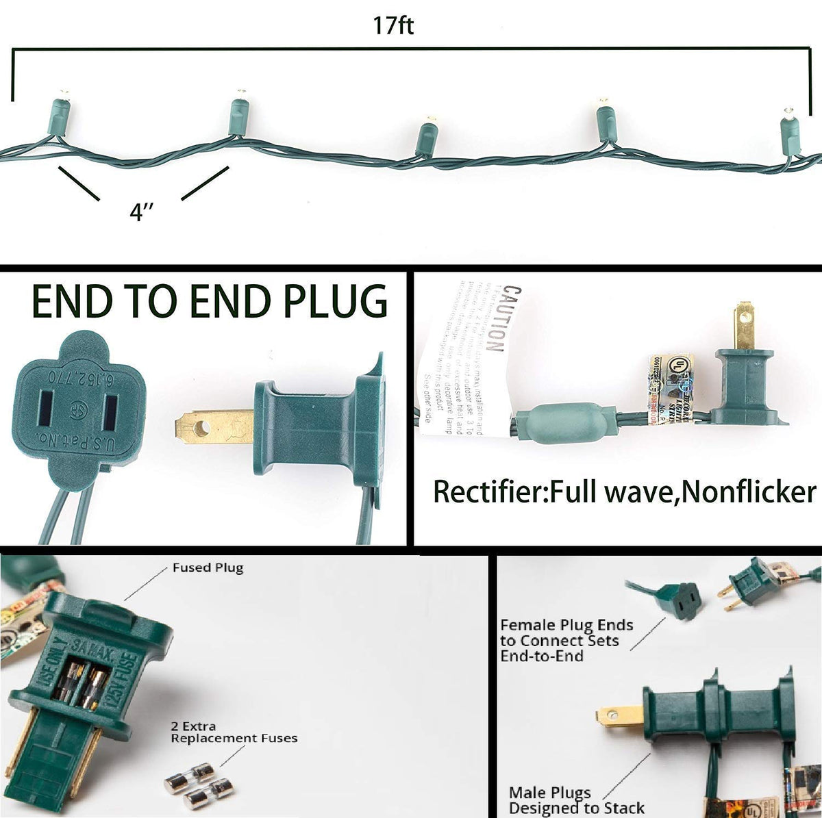 Crafted With enhanced Quality Materials, These Lights Feature 5 Mm Wide-Angle Epoxy Plastic Bulbs That Are Both Waterproof And Durable. Designed For Both Indoor And Outdoor Use, The String Lights Measure 17 Feet In Total Length, With A 6-Inch Lead, 4-Inch Spacing Between Bulbs, And A 6-Inch Tail. Each Bulb Consumes Only 0.048 Watts, Contributing To An Energy-Efficient Lighting Solution With A Lifespan Of Up To 75,000 Hours. The Lights Are Equipped With A Fused/Stackable Male Plug And End-To-End Connectors, Allowing You To Connect Multiple Strands Together Seamlessly.