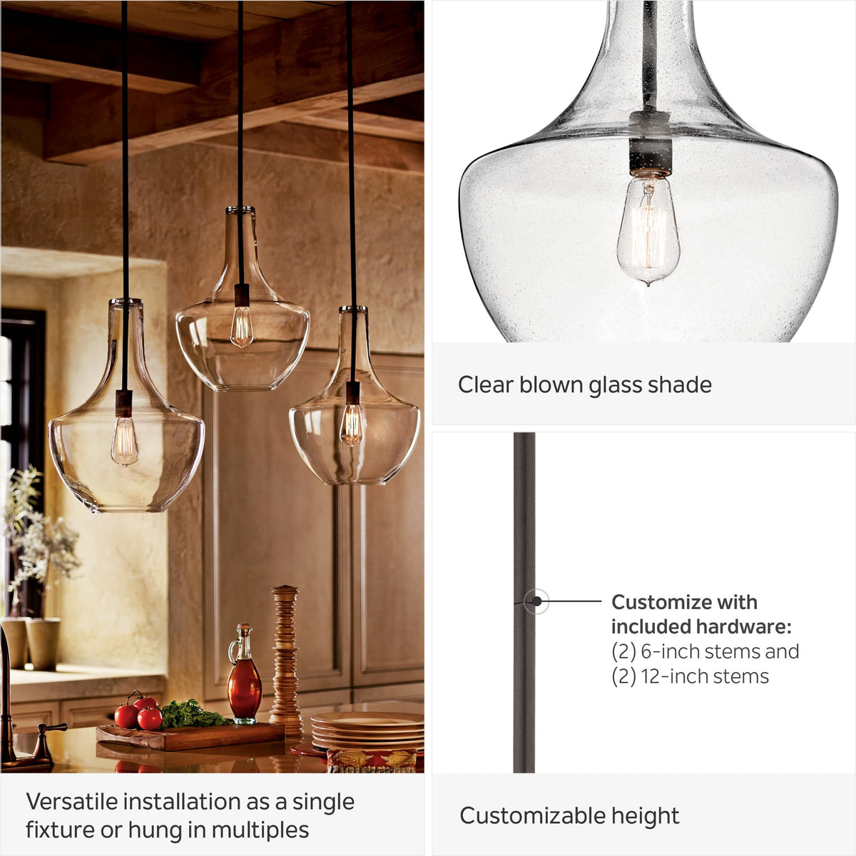 About The Everly 1-Light Bell Pendant: A Modern Style With Minimal Detailing, The Everly 1-Light Pendant Easily Elevates The Style Of Soft Modern Environments. This Elegant Pendant Offers A Soft, Curvilinear Form And Contemporary, Clear Seeded Glass Silhouette That Provides Ambient Lighting To The Entire Room. As Beautiful As It Is Versatile, Adjust The Hanging Height To Meet The Needs Of Your Space.