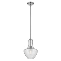 Everly 15.25 1-Light Bell Pendant With Clear Seeded Glass In Chrome, For A Kitchen Island, Dining Nook, Or Home Bar, (15.25 X 10