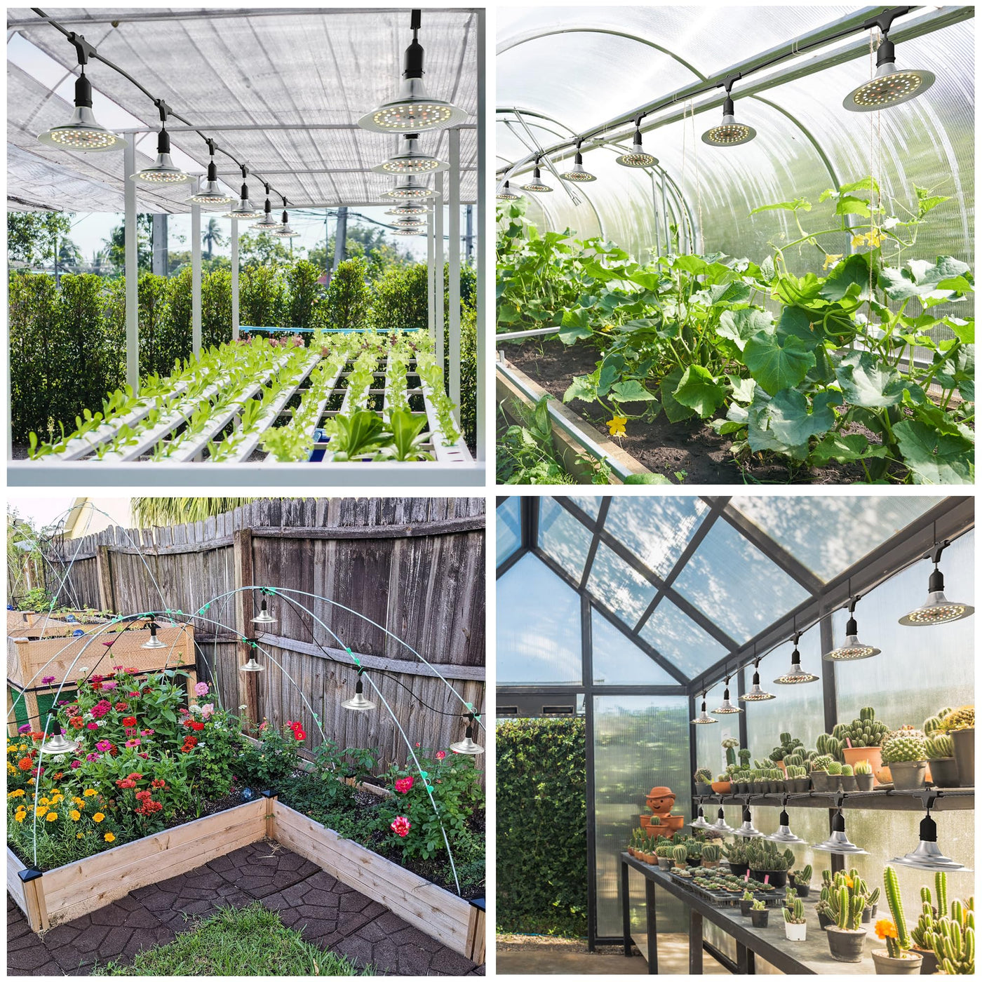 SAFE & DURABLE: EVERYGROW plant grow lights are UL certified. The IP44 waterproof design means they’re weatherproof outdoors. (Note: you must screw the bulb into the socket completely!) The grow bulb is made of aluminum to dissipate heat effectively and prolongs the lifespan of the greenhouse lighting. E26 socket and on/off switch for easy installation and daily use. LIGHTS THAT PLANTS LOVE: Each grow bulb contains 48×LED chips, including 24×3000K high-efficiency chips, 18×5000K white light chips and 6×660nm red light chips, infinitely close to natural sunlight. The advanced light mixture allows plants to absorb the maximum amount of energy needed for their rapid growth, increases yields and crop quality. It is the optimal choice for all plants at all stages growing from seed to fruits! HIGH EFFICIENCY & LOW POWER CONSUMPTION: 288 LED chips, 15,000 Lumen luminous flux, 100 lumens/s, more than 95% power factor, photosynthetic photon flux of up to 23.5 µmol/s and 25w of the rated power per bulb, providing a full range of light for plant growth. The highly reflective aluminum cover condenses photons to the plant without wasting or producing harsh light. FLEXIBLE & ADJUSTABLE CONNECTION: Our grow lights string is designed with a daisy chain connection, you can increase or decrease the number of lights and length of the string according to your needs. (Up to 72 bulbs can be connected at a time!) EVERYGROW plant lights can be widely used in different growing spaces and growing stages, outdoor plant gardening and greenhouses. (Tip: Recommended installation height is 30 inches to 50 inches above plants!) ATTENTIVE CUSTOMER SERVICE: Choose the perfect EVERYGROW grow lights for your indoor and outdoor plants now! If you have any problems or dissatisfaction, please feel free to message us, we will be happy to help you!