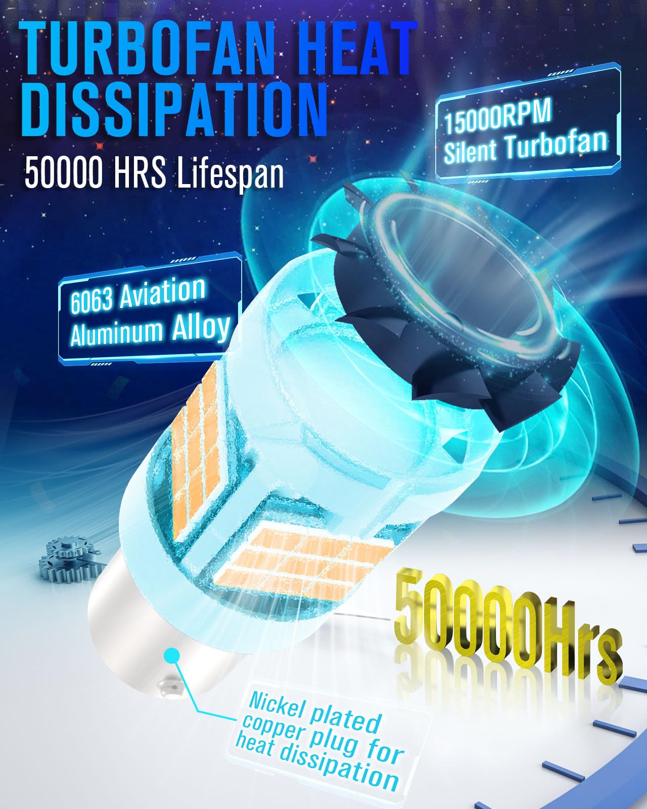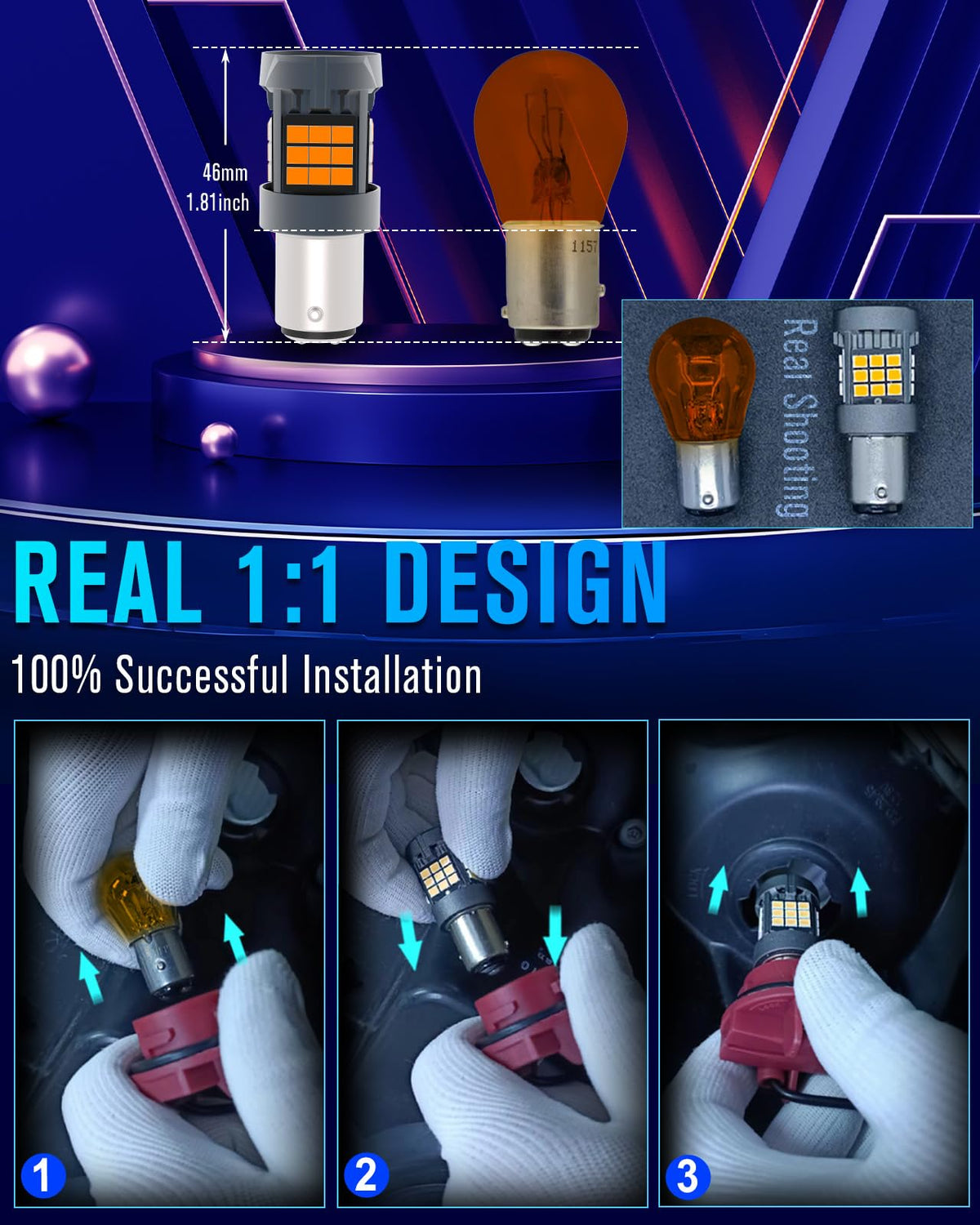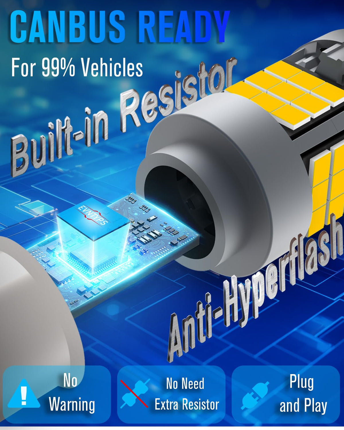 Introducing the ultimate solution to your automotive turn signal bulb needs - the 1157 LED turn signal bulb with built-in resistor and anti-hyper flash technology. With a stunning 2200K amber yellow color and a powerful 30W 4000LM output, this bulb is designed to provide ultra-strong penetration and visibility, making it perfect for both front and rear turn signal applications. The CANBUS ready feature ensures error-free installation, while the plug and play design and non-polarity feature make it incredibly easy to install in just 5 minutes. The aluminum body with turbo fan and IC controls temperature to ensure maximum performance, and there is no radio interference to worry about. This bulb is also equipped with load resistors, making it compatible with LED turn signal lights. Upgrade your turn signal bulbs with confidence knowing that you have the best LED blinker bulbs on the market.