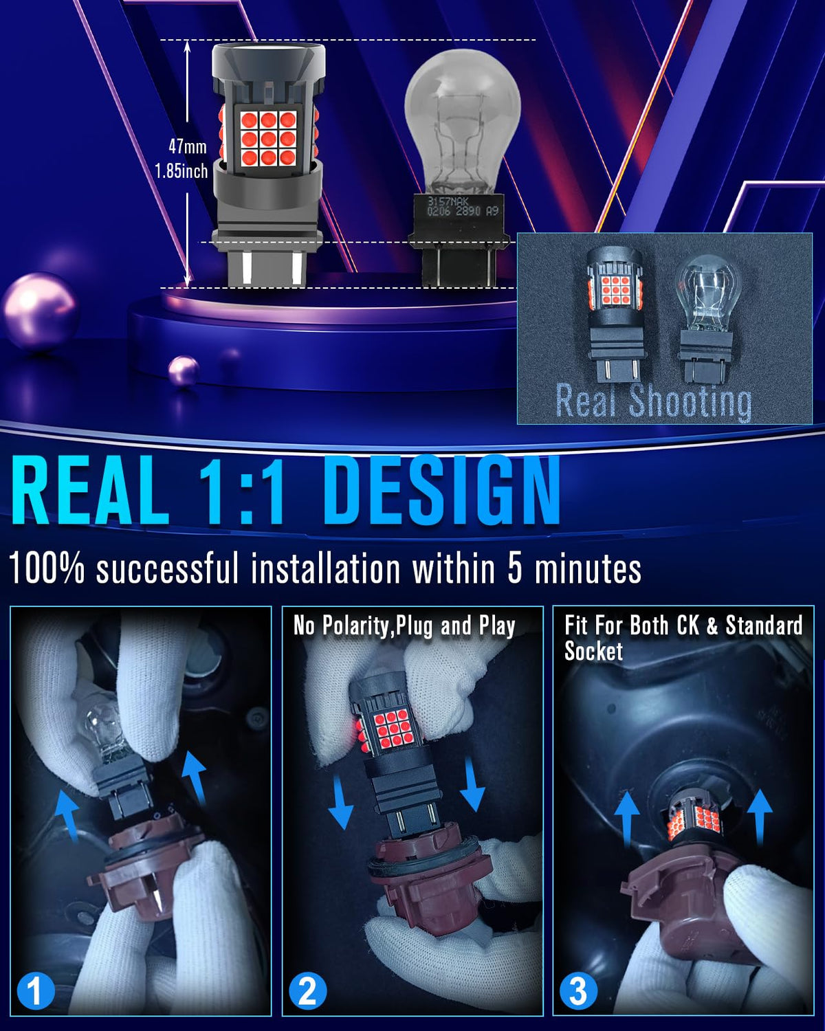 Q: Can I use the Evntyps 3157 LED bulb in all socket types?A: Yes, it is adaptable to both ordinary and CK sockets, making it versatile for various automotive applications.