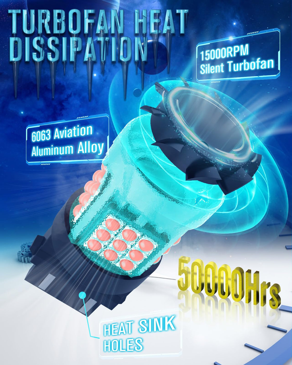 Long lifespan of up to 50,000 hours, thanks to its intelligent temperature control system.
