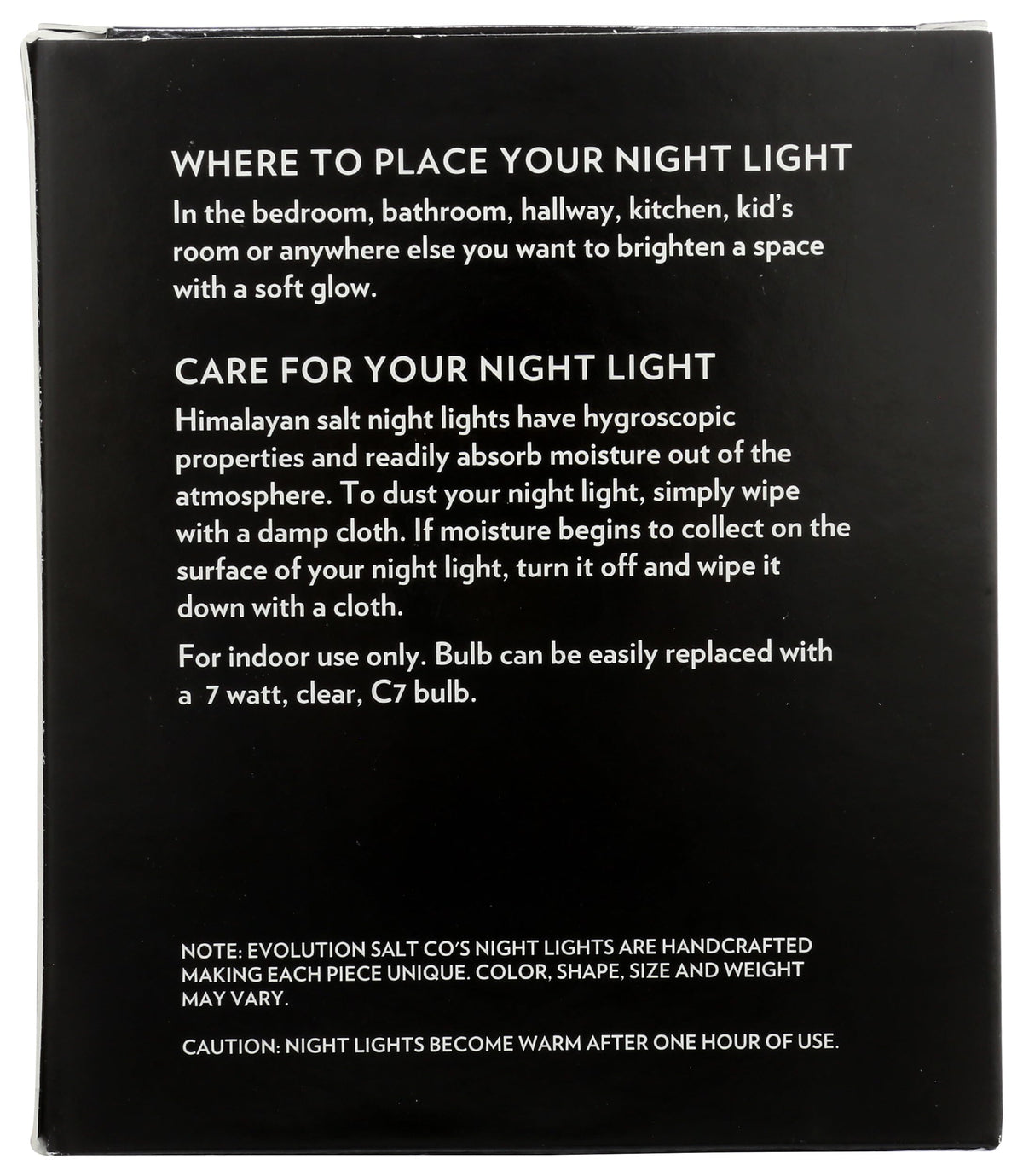 Details:Evolution salt - salt nght light natural - 1 each - eacountry of origin : pakistansize : eapack of : 1selling unit : each