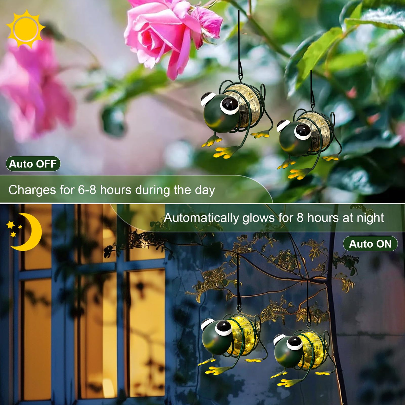 Evolux Solar Outdoor Frog Lights For Garden - Hanging Frog Lights Statues For Lawn Patio Balcony Yard Ornament Cut Housewarming Gifts(2 Pcs)