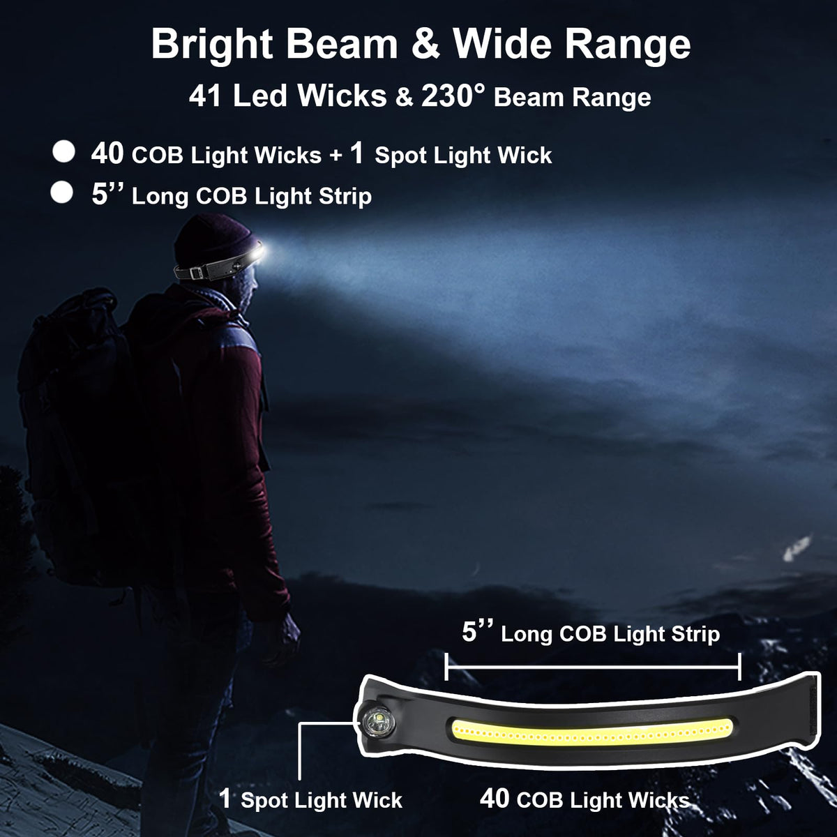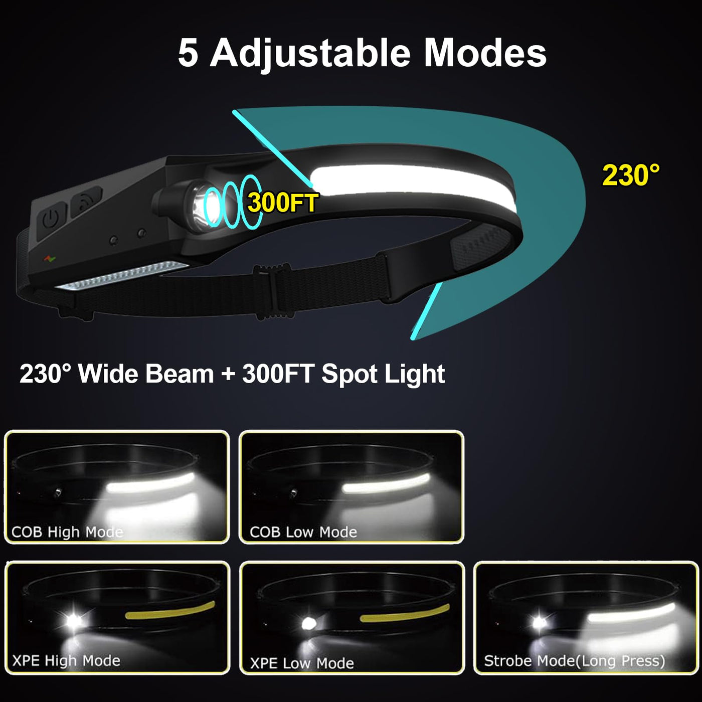 Ewenele Headlamps Rechargeable 4 Packs, 230 Wide Beam Powerful Head Lamps Led Rechargeable Headlamps For Adults With Motion Sensor, 5 Modes, Usb C Charging, Long Battery Life, Cob, Spot Light, For Running Working