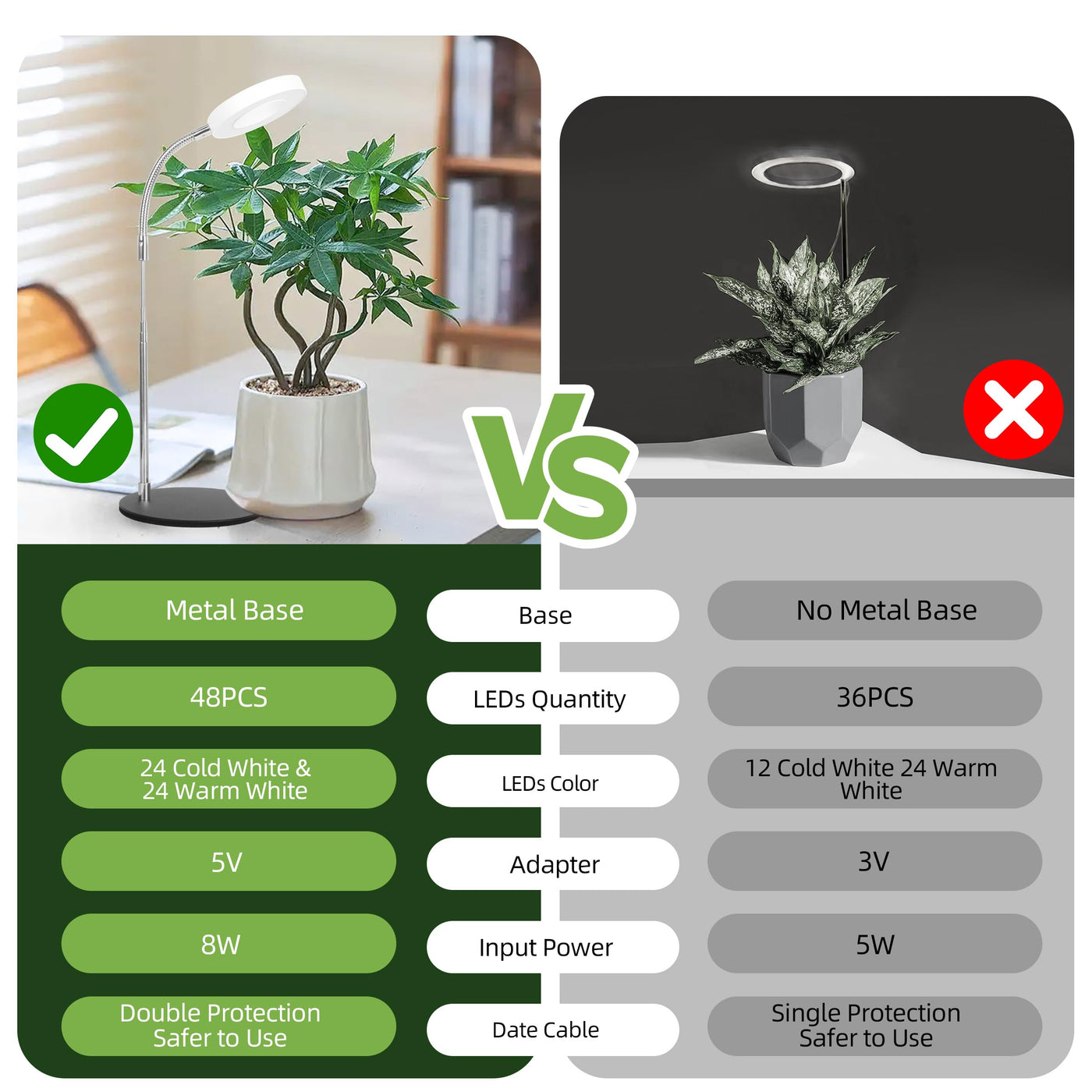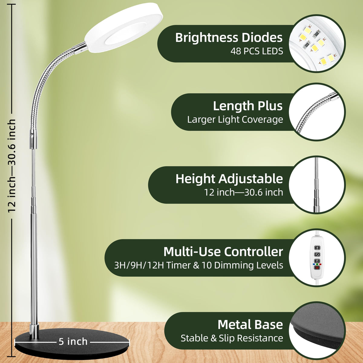 Ewpjdk Grow Light Full Spectrum Plant Grow Lights With Detachable Base 48 Led Plant Light Desk Grow Lamp For Indoor Plants Growing Lamps (White, 1)