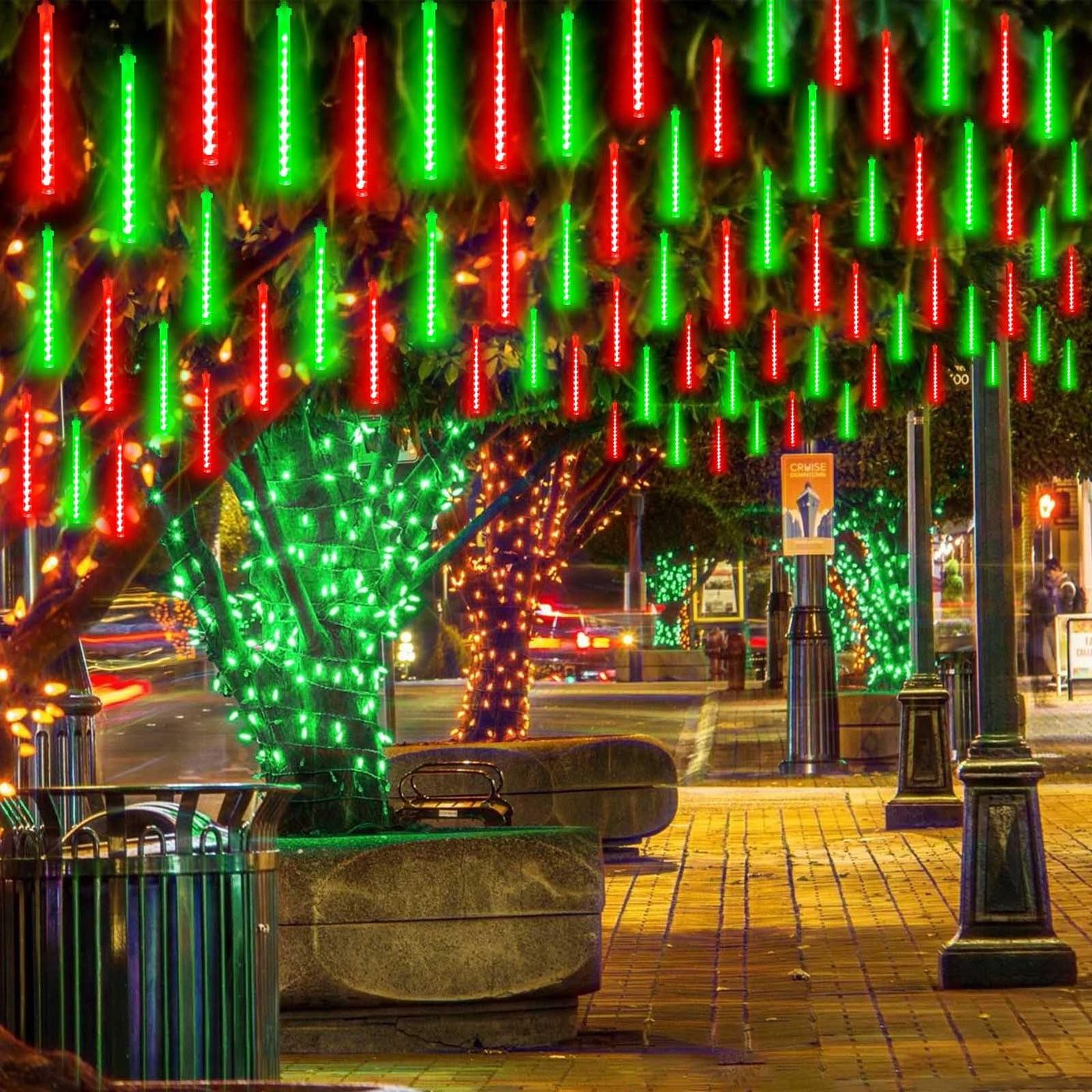 Q: What colors are available for these Meteor Shower Lights?A: The Meteor Shower Lights are available in a red and green color combination, ideal for festive decorations.