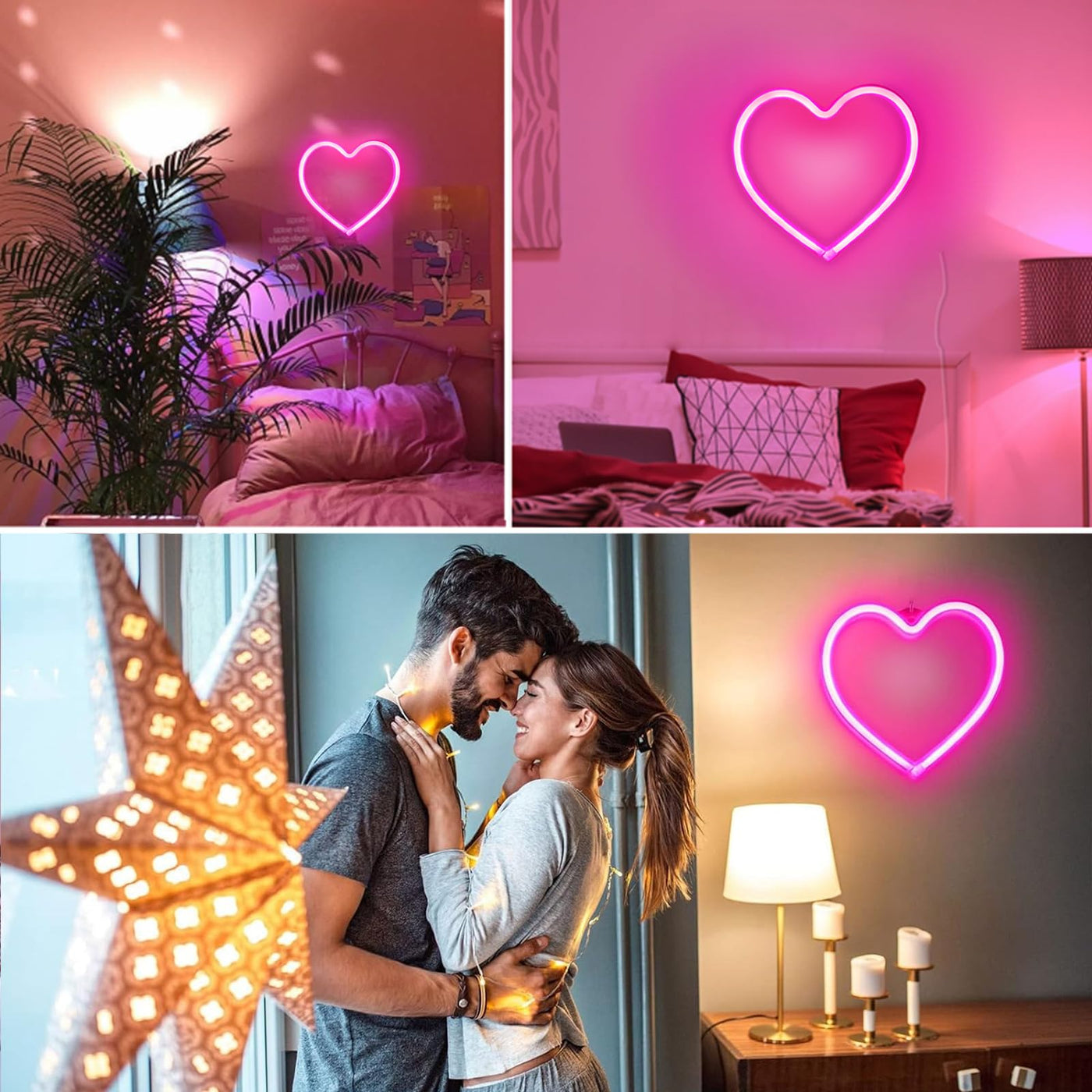 - **Versatile Power Options**: The Pink Heart Neon Sign can be powered by USB (included) or 3 AA batteries (not included), offering flexibility for placement. With low energy consumption and a long lifespan, this light is both economical and eco-friendly.