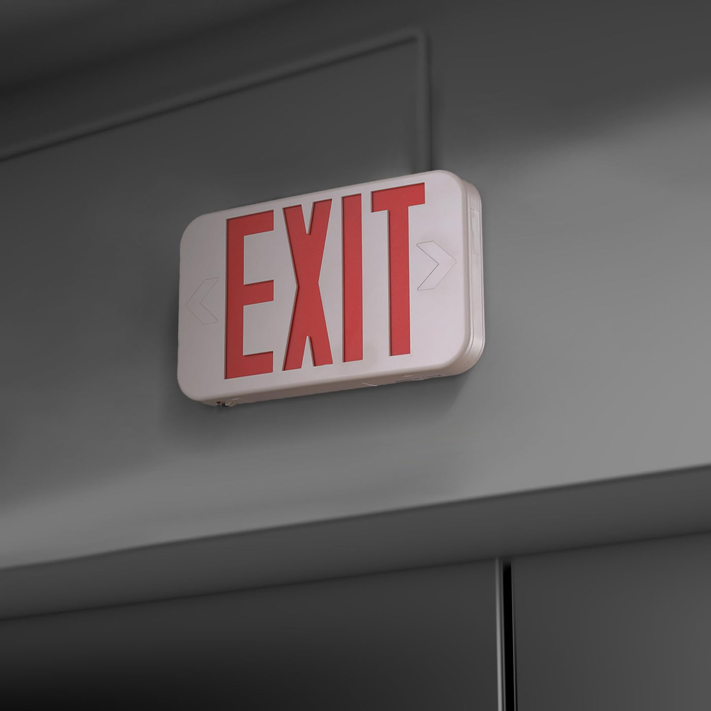Exitlux 1 Pack Red Led Exit Sign With Emergency Lights & Battery Backup - Double Face - 120-277Vac Fire Exit Signs Lighting