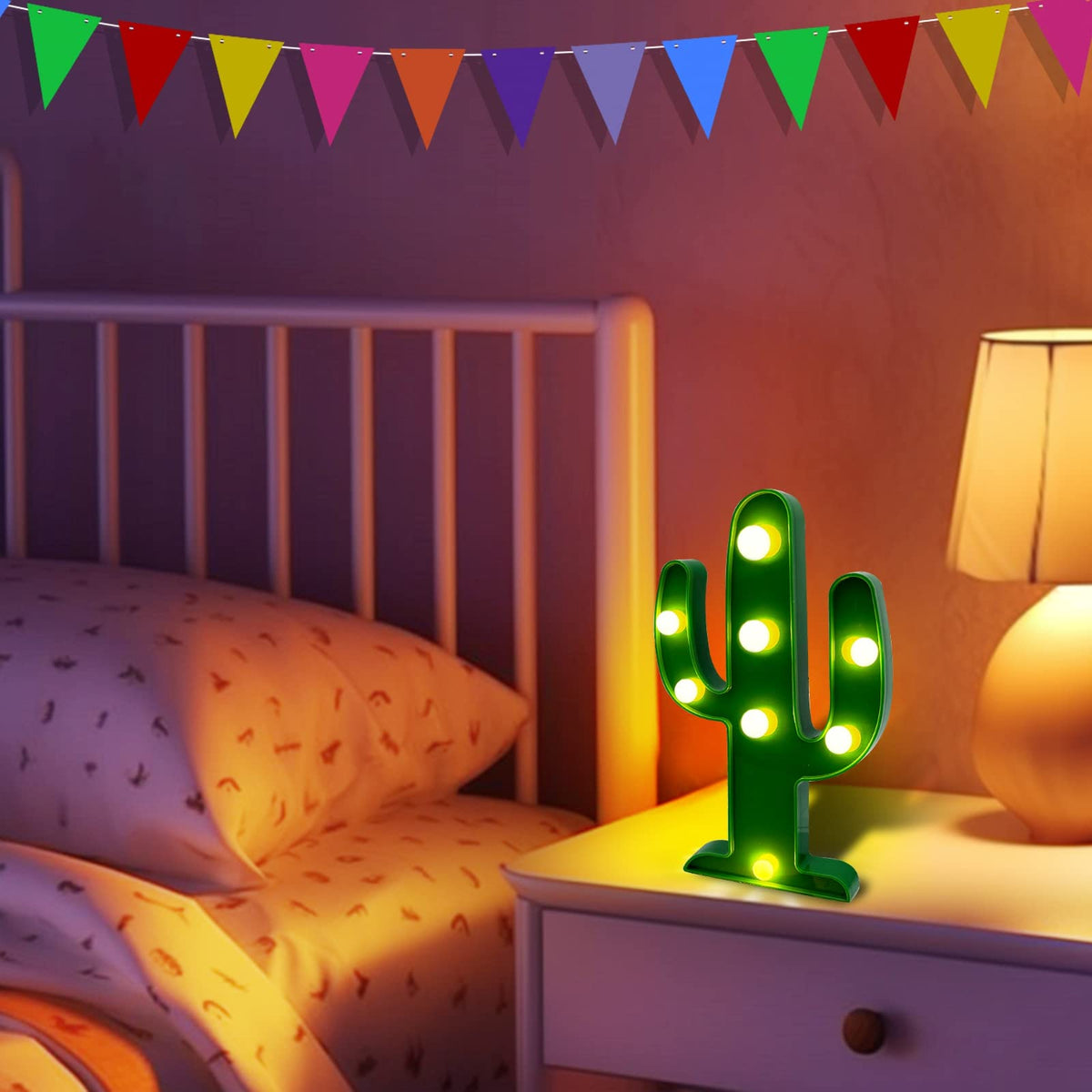 [ Extra Large & 2 Pack ] Cactus Light Mexican Party Decorations Total 16 Led 10 Inch Cactus Decor Fiesta Cinco De Mayo Decor Cute Night Lamp For Table Kids' Room Bedroom Living Room Gift Party
