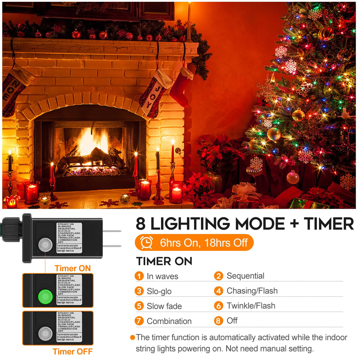 Fairyglim Christmas String Lights Plug In 8 Modes With Timer29V Low Voltage Guarantees Safety, The String Lights Has Ip44 Waterproof Grade, The Switch Can Be Controlled By Plugging And Unplugging The Power Supply, And The Energy-Saving Materials Used Can Save A Lot Of Energy.The String Lights Are A Great Choice For Indoor And Outdoor Decorations, Suitable For Christmas Trees, Windows, Doors, Bookshelves, Dining Room, Living Room, Bedroom, Bathrooms, Classrooms, Fireplaces; And Outdoor Places: Eaves, Yards, Fences, Balcony, Patio, Restaurants, Porch, Backy, Garden, Gazebo, Cafe And More. It Is Ideal For Christmas, Parties, Thanksgiving, Weddings, New Year And Halloween Decorations.Decorating Your Home With Fairy String Lights, Creating A Romantic Festival Vibe, Enjoy The Pleasure Festive Holiday With Your Family.