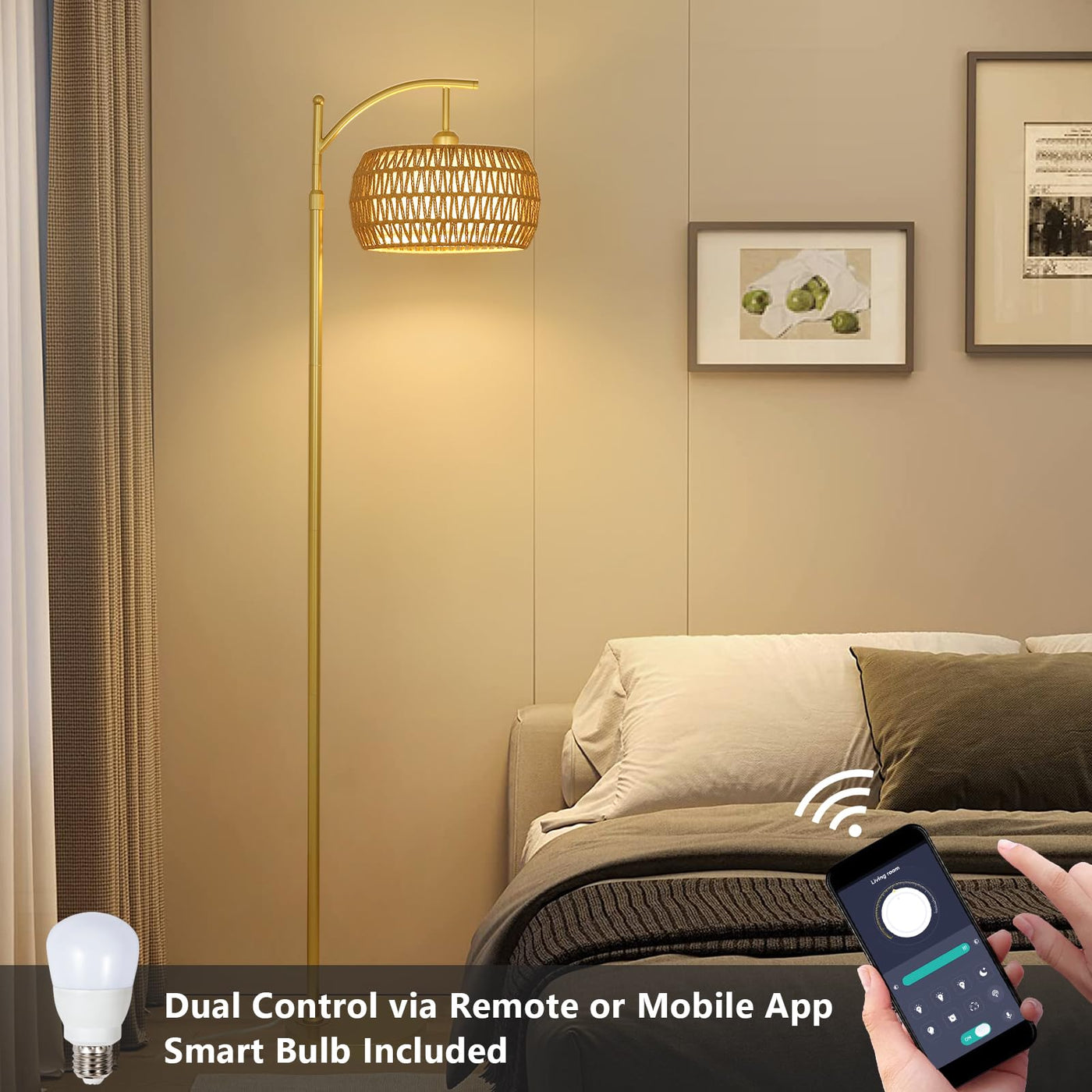 This Boho Arc Floor Lamp Has 3 Control Ways And 3 Display Effects, The Handwoven Rattan And Linen Drum Lampshade Design Softens The Light To Minimize Stress On Your And Your Baby? Eyes.Multifunctional Design Makes The Modern Floor Lamp With Remote Suitable For Various Settings In Your House. This Standing Lamp Is Ideal As Floor Lamp For Bedroom, Floor Lamps For Living Room Bright Lighting, Living Room Floor Lamp, Bedroom Floor Lamp, Floor Lamps For Bedroom, Floor Lamp For Office, Floor Lamp For Living Room, Office Floor Lamp, Standing Lamp For Bedroom, Standing Lamps For Living Room Modern, Tall Lamp For Living Room Corner, Tall Lamps For Living Room, Tall Lamp For Bedroom.Our Arched Floor Lamp Design Is Not Just Perfect As A Functional Lighting Solution But Also A Stylish Home Decor Piece. With A Sturdy Metal Base That Stands Firm, Providing Stability And Peace Of Mind. Color: Gold Floor Lamp Package Included: 1*Fabric Lampshade/1*Rattan Lampshade/1*Smart Light Bulb/1*Remote Control/1*Stable Metal Base/1*Installation Instruction Manual