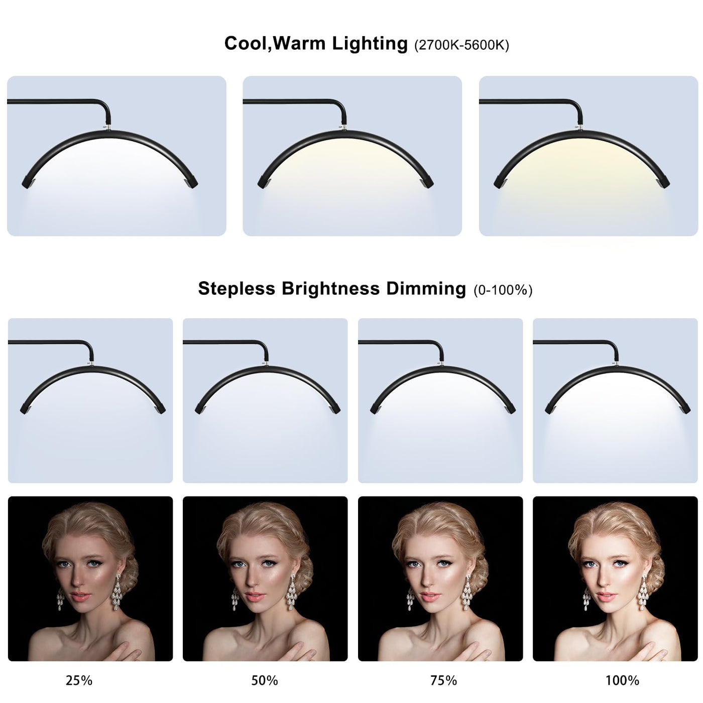 Q: Is the brightness adjustable on the Eyelash Lamp?A: Yes, the Eyelash Lamp offers adjustable brightness ranging from 0% to 100%, allowing you to set the perfect lighting for eyelash extensions, makeup application, or any other beauty treatments.