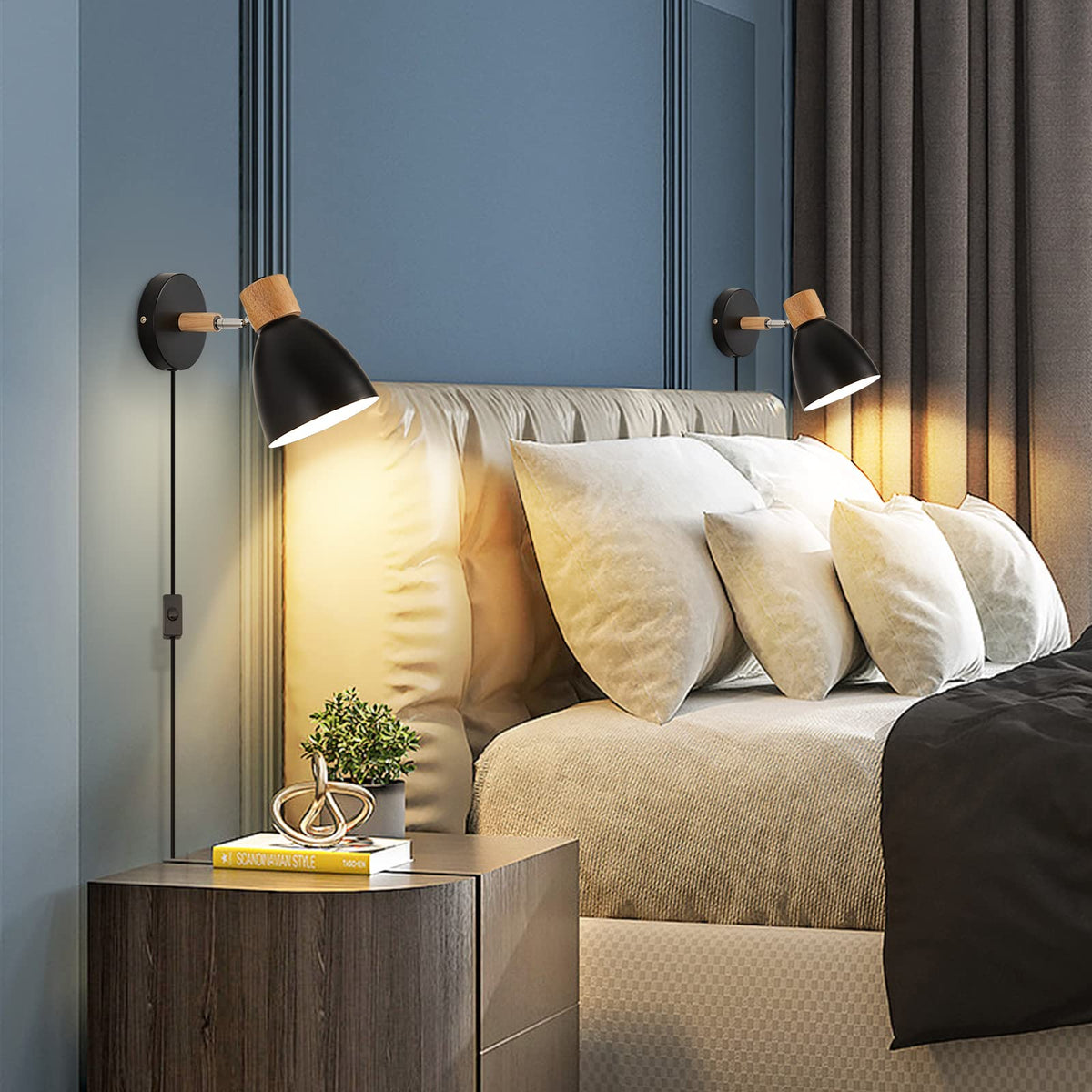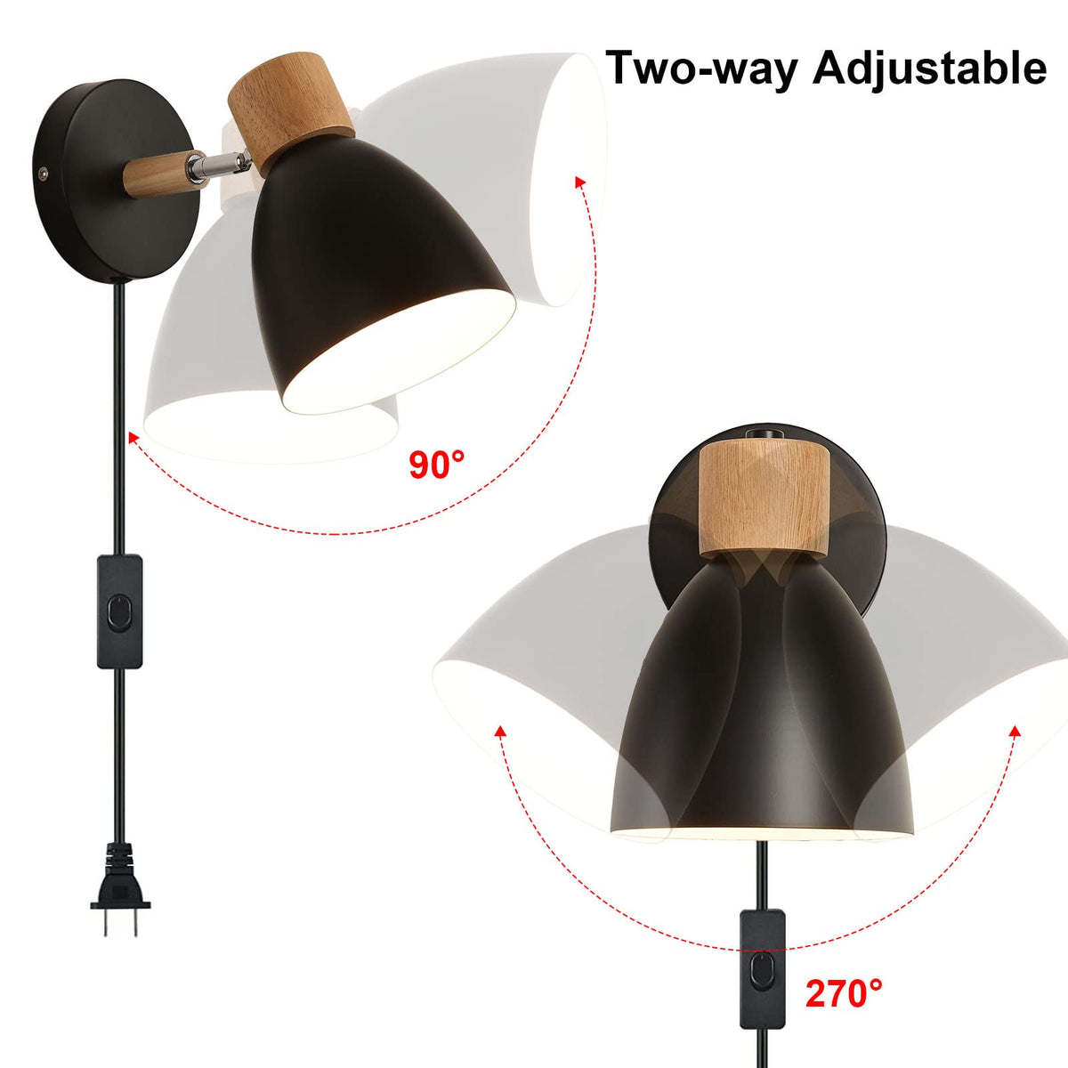 Eyooer Wall Sconces Plug In, Swing Arm Wall Lamp With Power Cord, Black Plug In Wall Lighting Fixtures Set Of Two, Bedside Wall